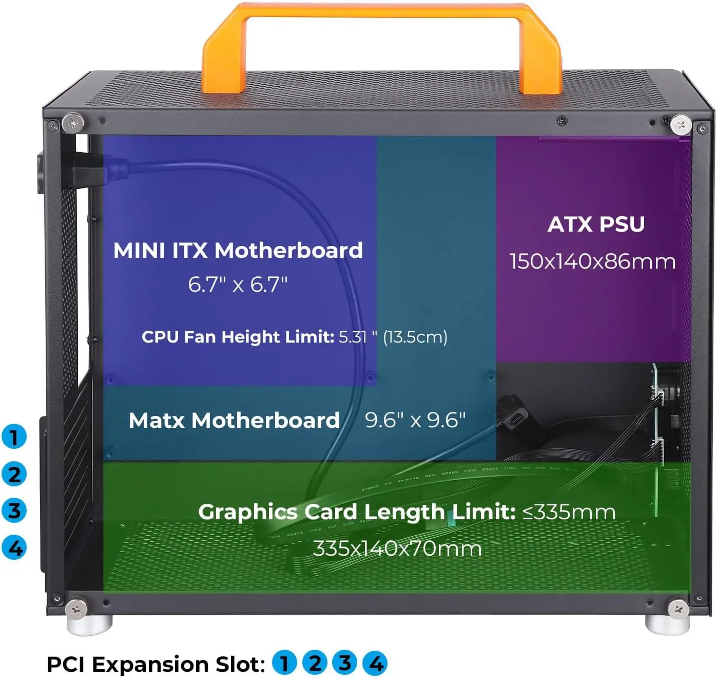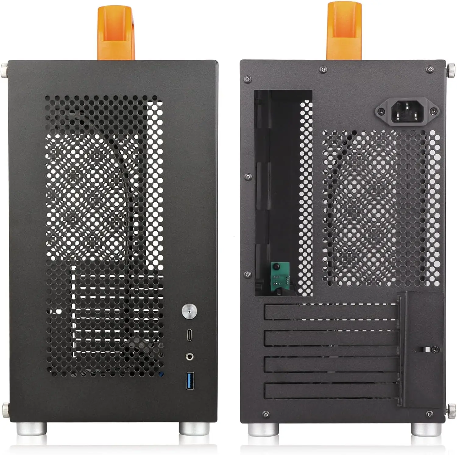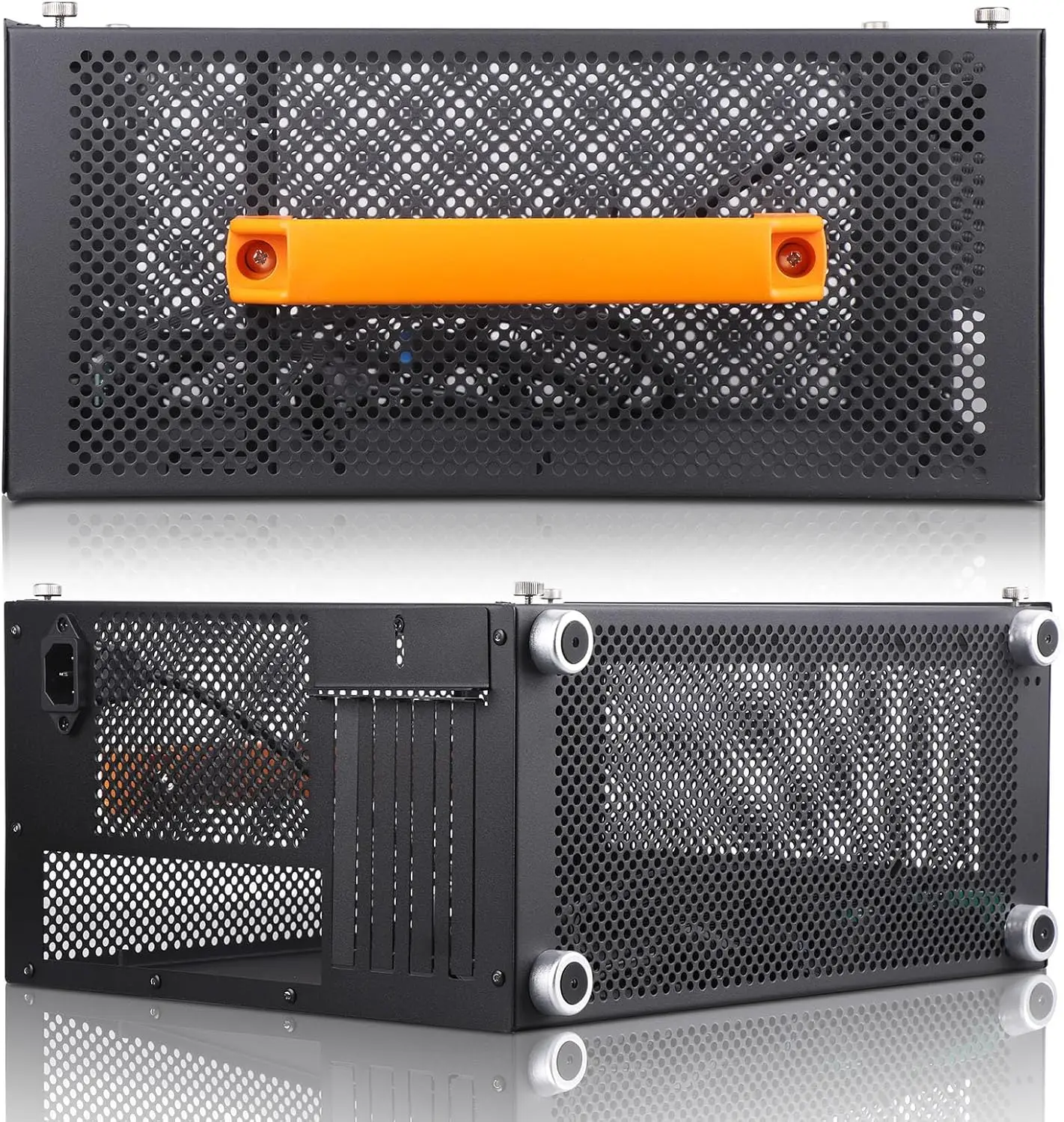 Estuche para PC para juegos con mini torre y mango naranja extraíble. La portabilidad mejorada le permite transportar y usar su computadora en cualquier lugar y en cualquier momento, mejorando la flexibilidad de su vida y funcionando en gran medida. Consejos: Es necesario apretar los tornillos.