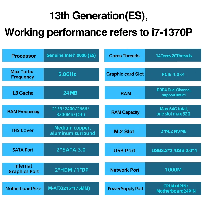 Comprar M-ATX DIY LGA 1151 placa base CPU Combo 13th Kit Core Interposer Q1J2(i7 ES 0000)14C20T 24MB DDR4 RAM PCIE4.0X4 placa mãe