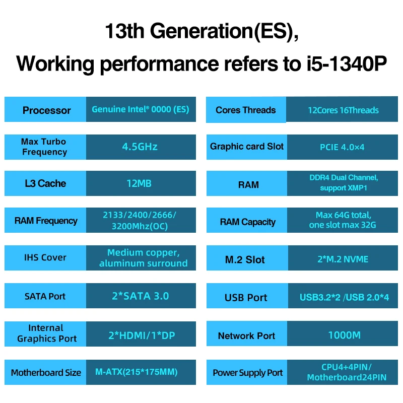 Comprar M-ATX DIY placa base de escritorio CPU Combo 13th Kit Core Interposer CPU Q1J4(i5 ES 0000)12C16T 12MB DDR4 RAM PCIE4.0X4 PC Completo