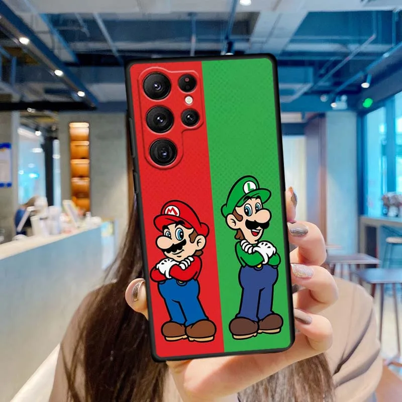M-Marios-funda de teléfono de dibujos animados de arte Popular para Samsung Galaxy S25 S24 S23 S22 S21 S20 S10 Ultra Plus FE 5G, funda de TPU suave negra