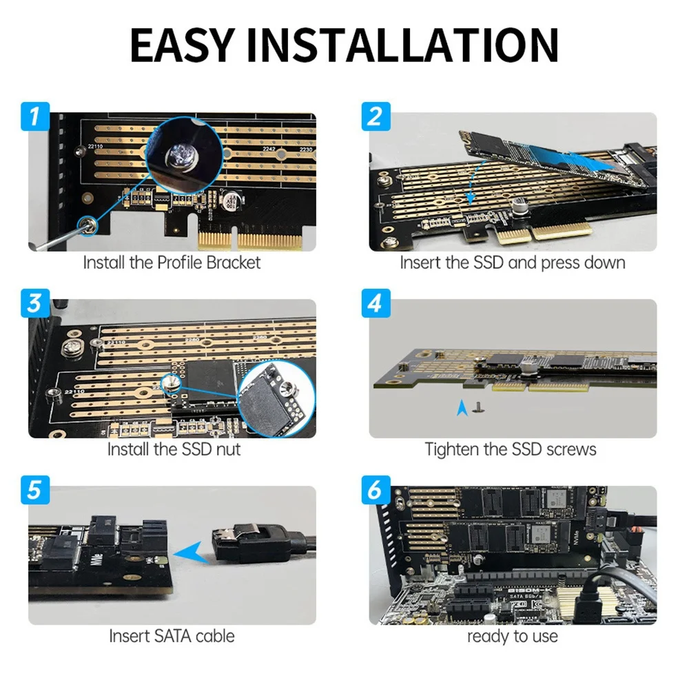 Comprar M. Tarjeta de expansión de transferencia de disco Dual Nvme NGFF SSD a Pcie SATA, ranuras Pcie X4 X8 X16, compatible con interfaz Mkey Bkey