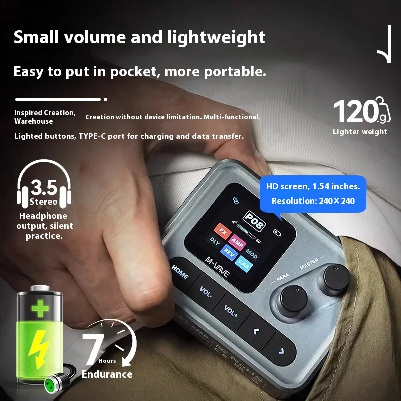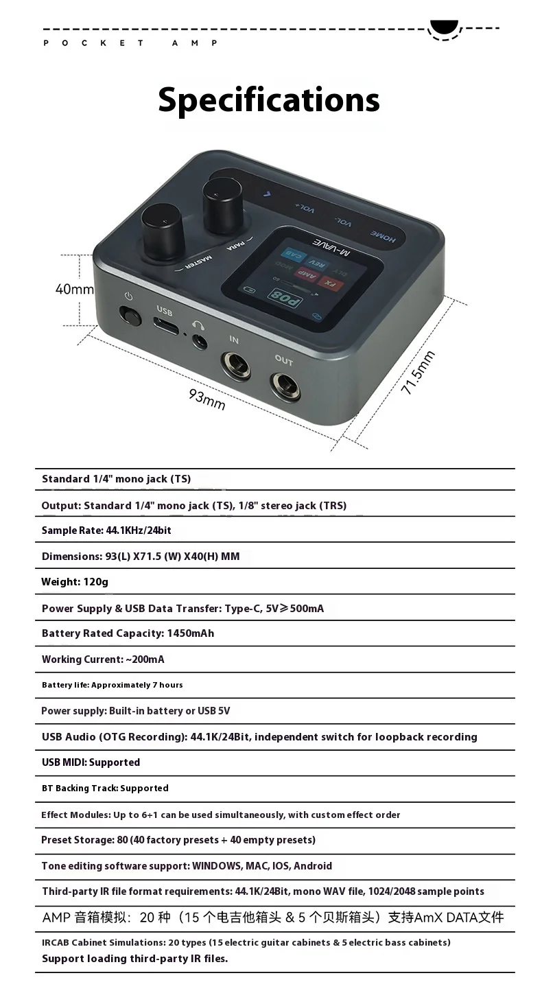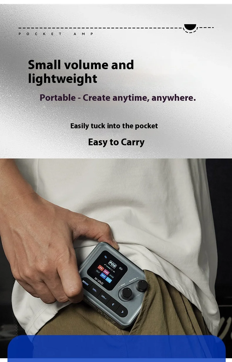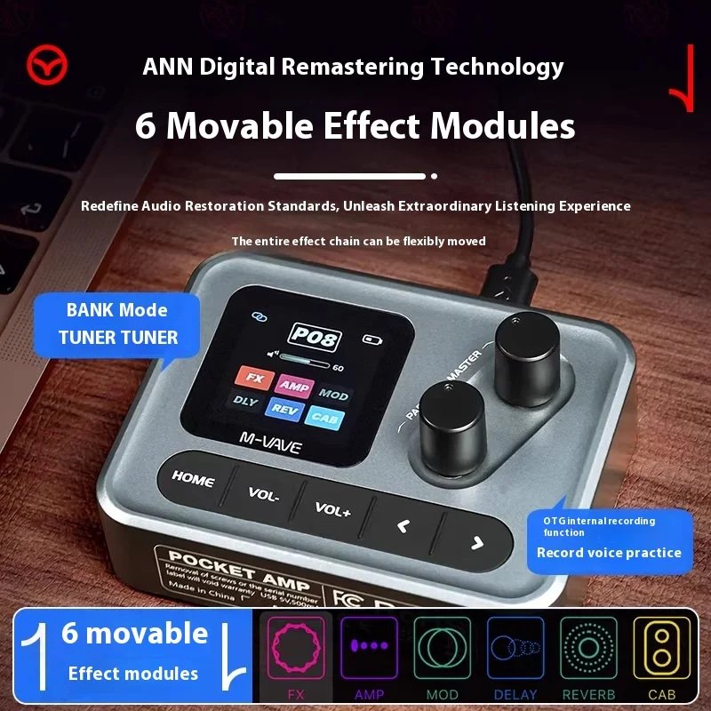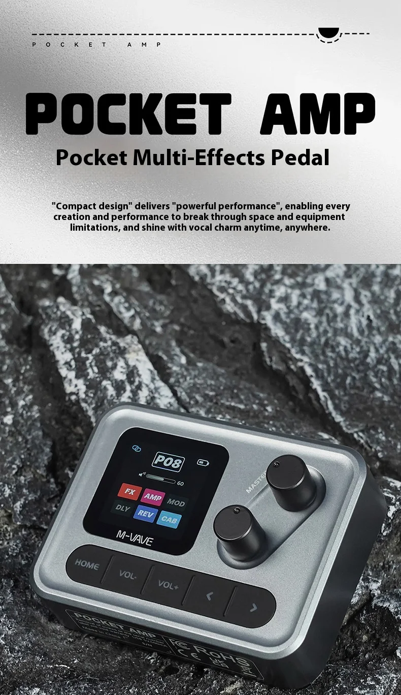M-VAVE Pocket AMP Mini amplificador de bajo para guitarra 1,54 pantalla LCD a Color 1450mAh Control por aplicación procesador de efectos de escritorio multifunción personalizado