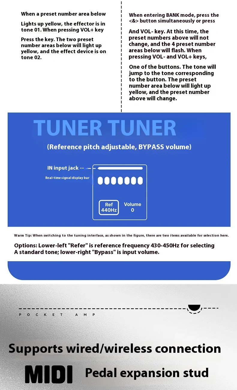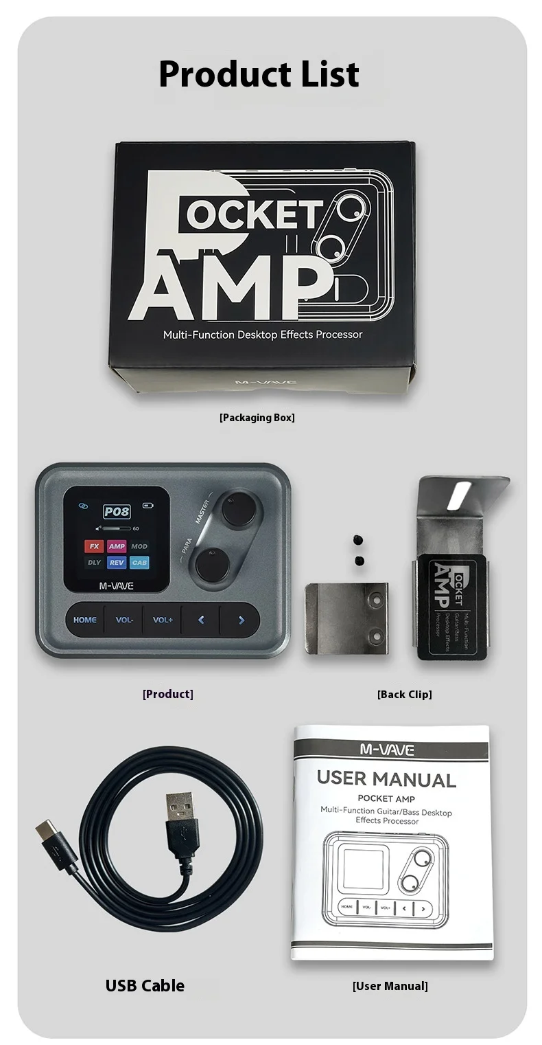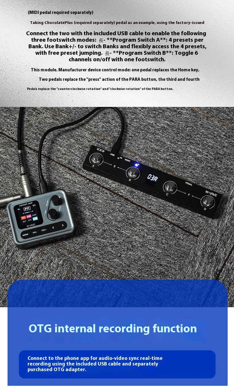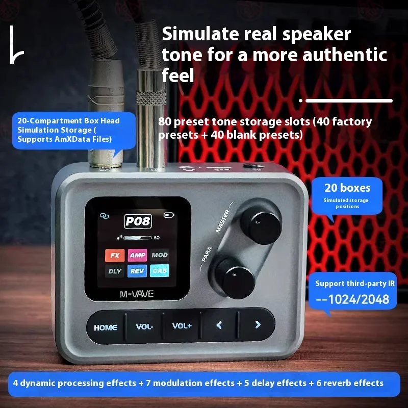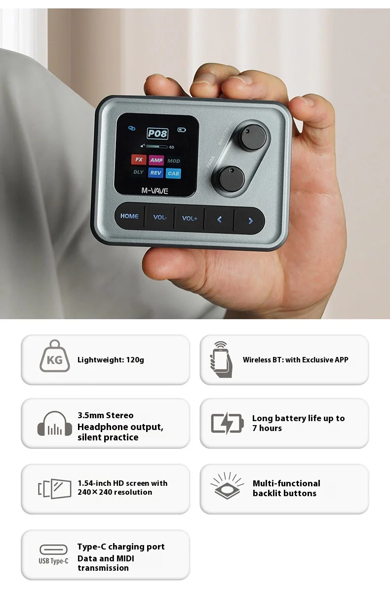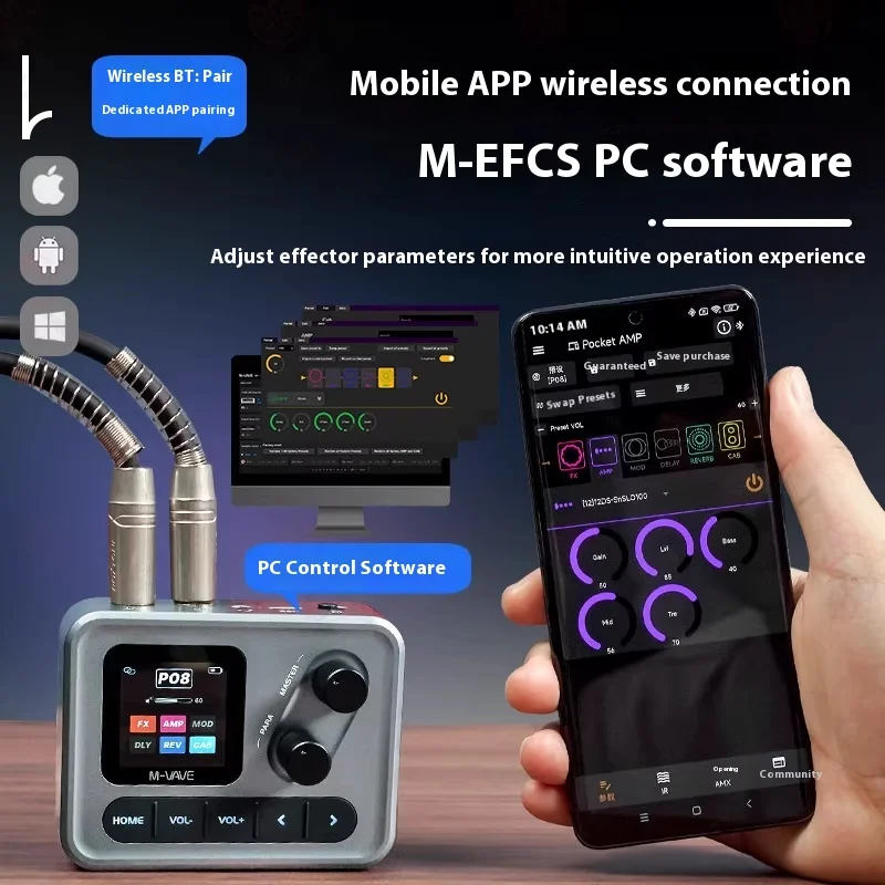 M-VAVE Pocket AMP Mini amplificador de bajo para guitarra 1,54 pantalla LCD a Color 1450mAh Control por aplicación procesador de efectos de escritorio multifunción personalizado