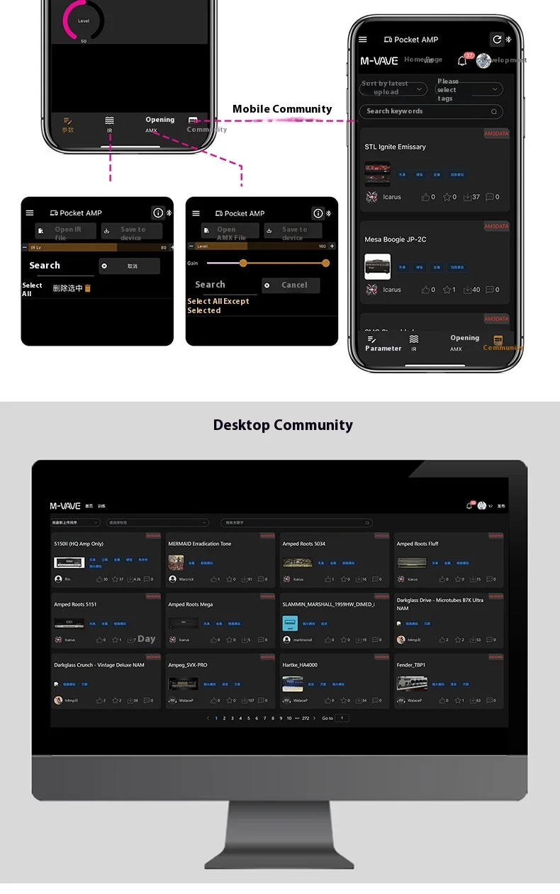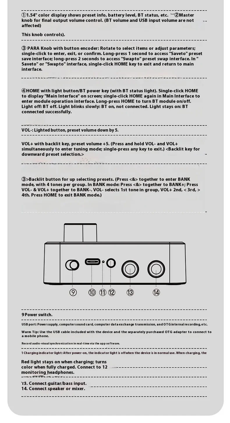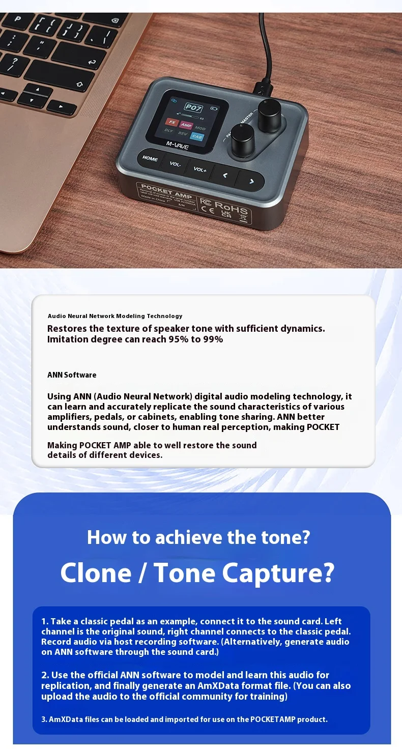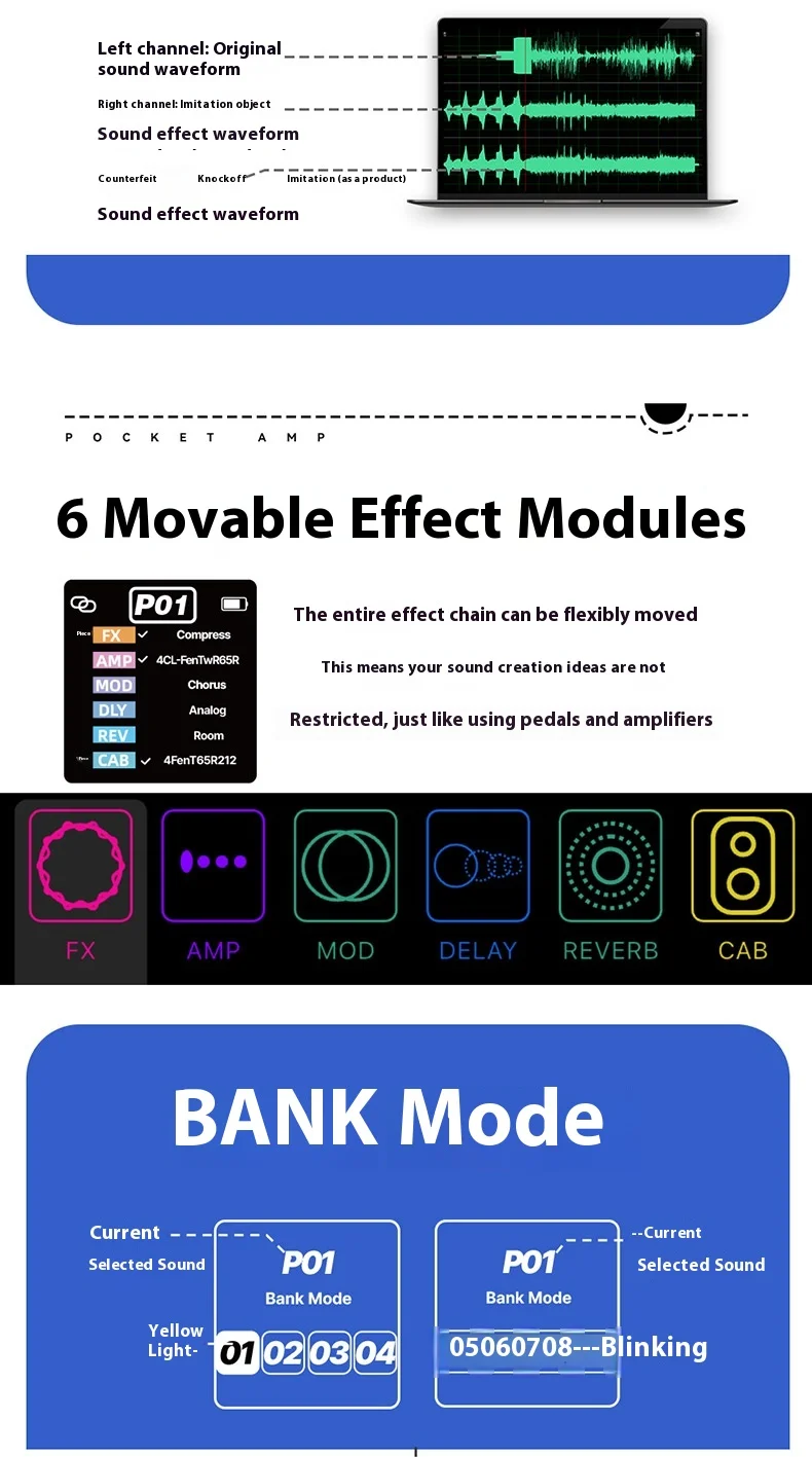 M-VAVE Pocket AMP Mini amplificador de bajo para guitarra 1,54 pantalla LCD a Color 1450mAh Control por aplicación procesador de efectos de escritorio multifunción personalizado