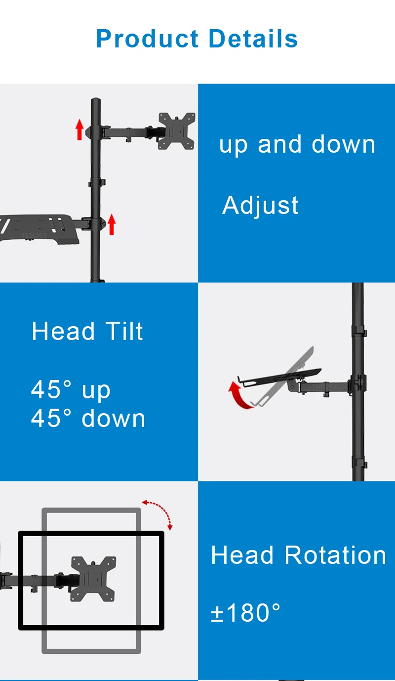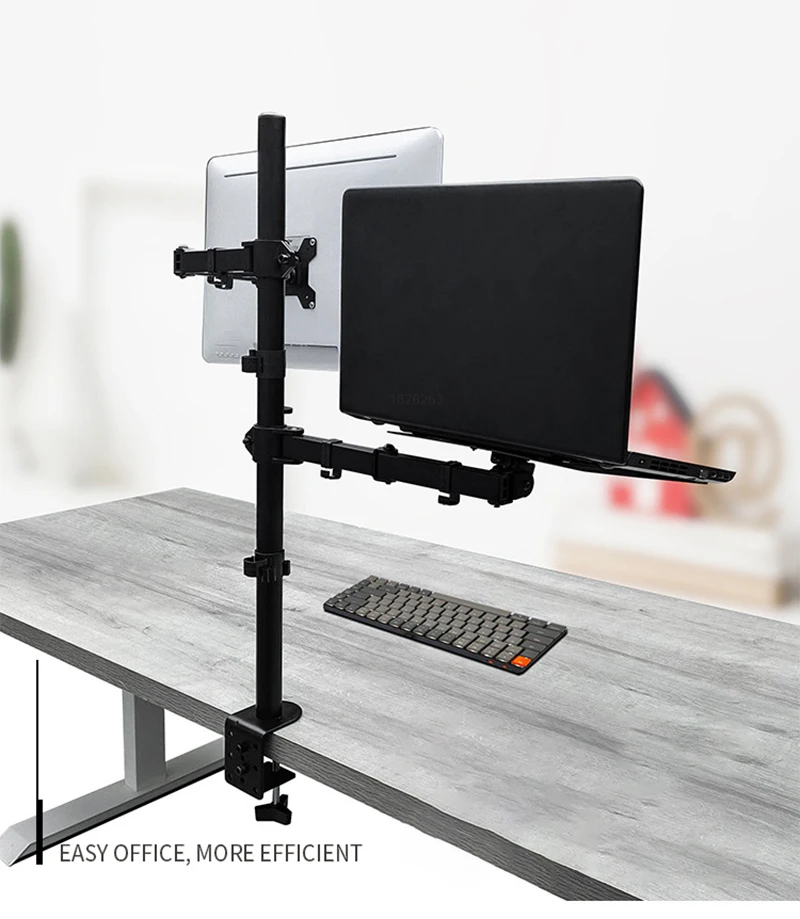Montaje de movimiento completo: monitor + portátil fácilmente inclinable, giratorio y giratorio