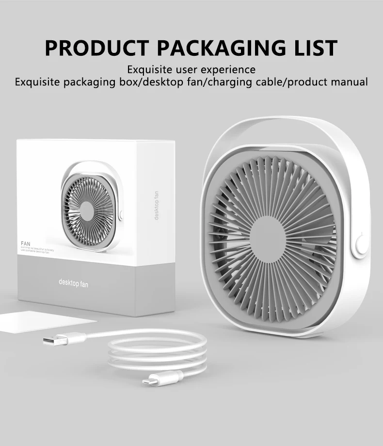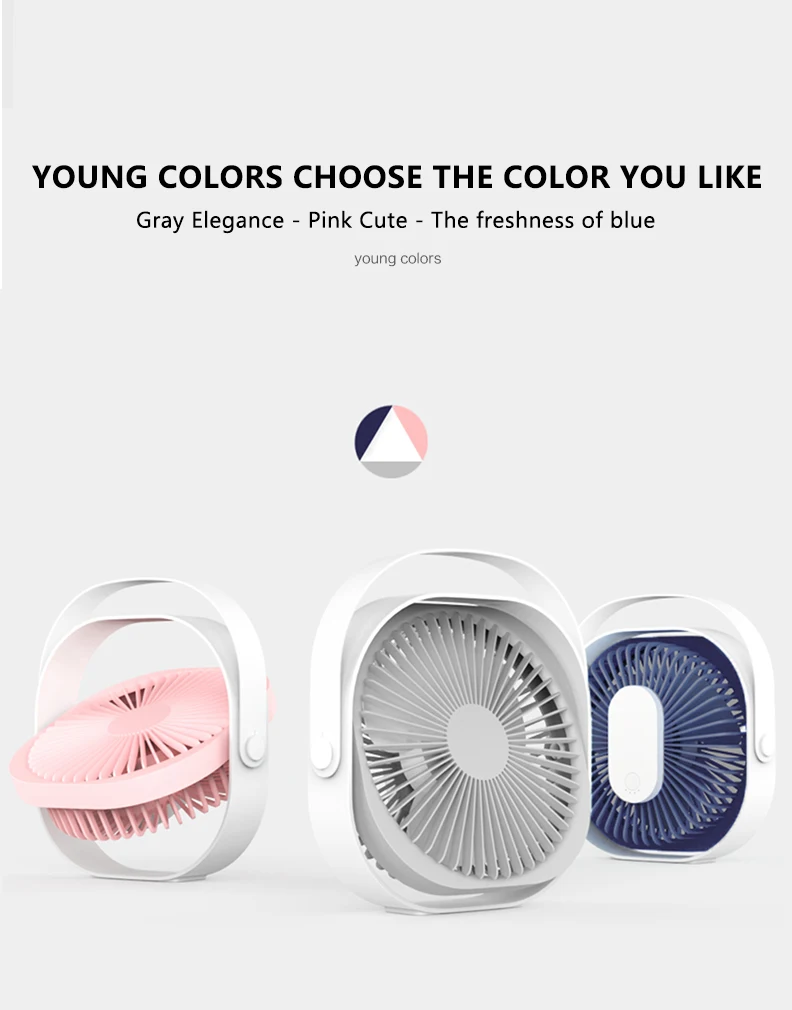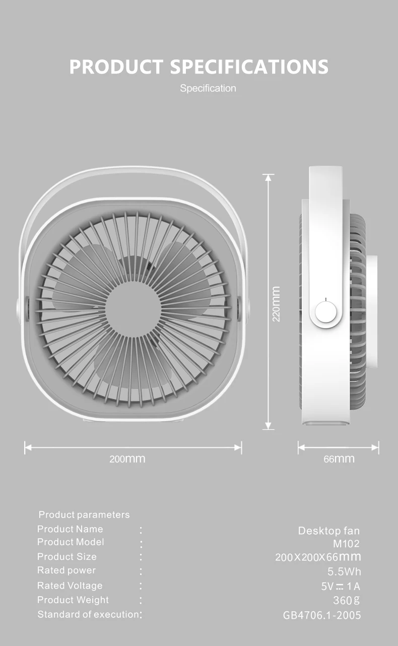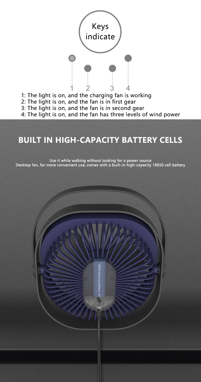 3. Equipado con USB para una carga fácil, la salida puede funcionar con batería, hay 3 Ajustes de aire frío, puede elegir el viento adecuado de acuerdo con la temperatura ambiente y las necesidades personales.