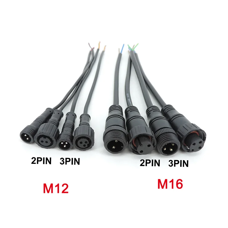 M12 M16 resistente al agua 2 pines núcleo DC macho hembra Jack tuerca IP65 Cable conector de fuente de alimentación enchufe de cable para tira de luz LED