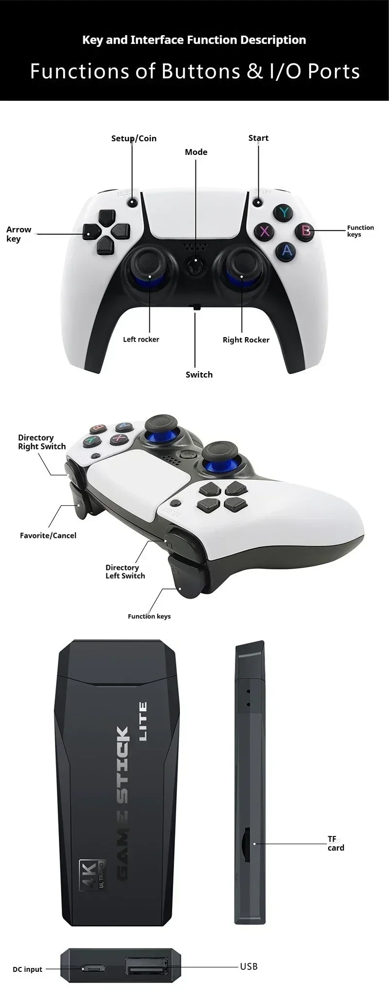 Comprar M15 MINI consola de videojuegos retro, mando inalámbrico Dual, palo de juego 64G, 20000 juegos Retro, salida HD de juego Retro