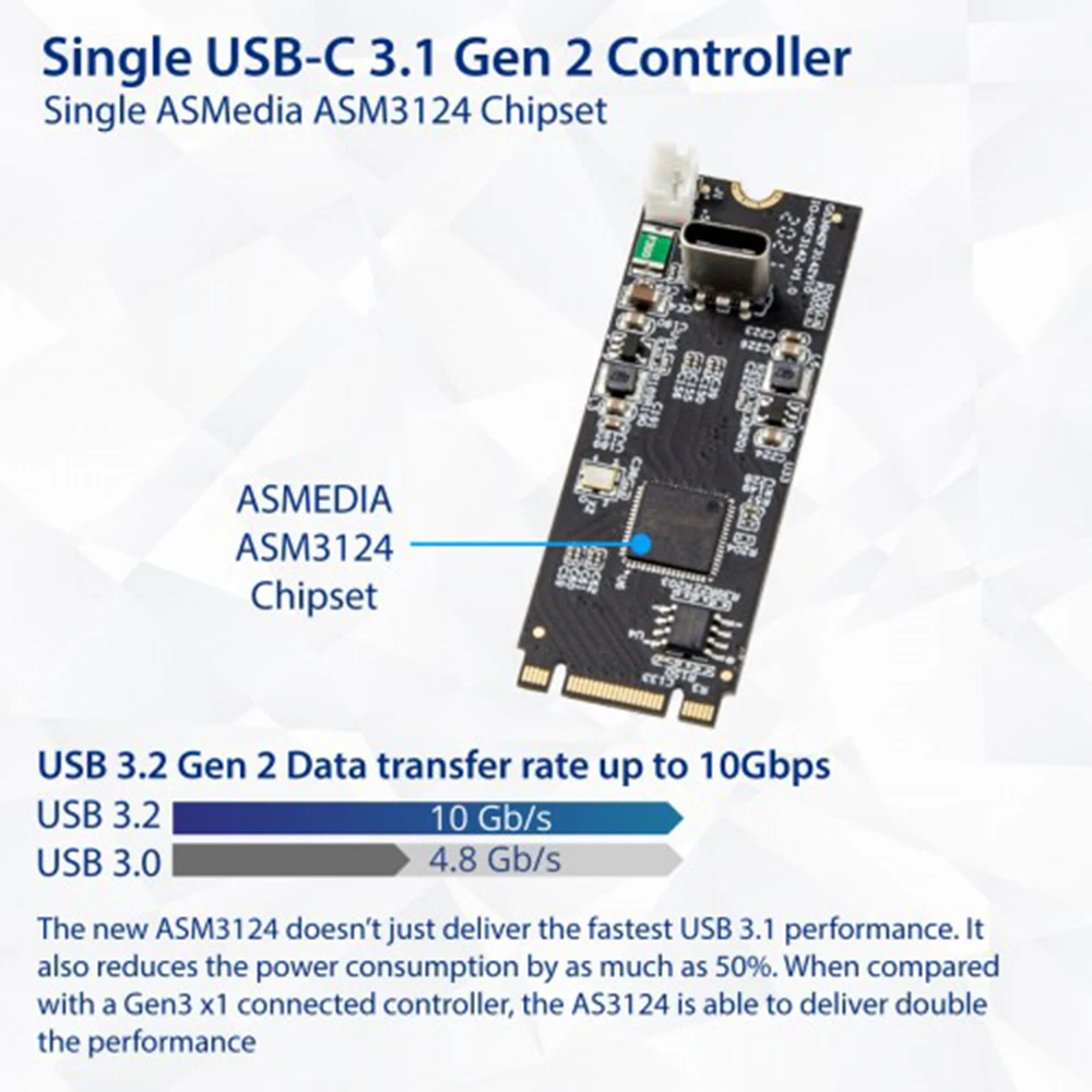 Tarjeta controladora de llave USB 3.2 Gen 2 (10 Gbps) 1 puerto tipo C M.2 22x60 B+M