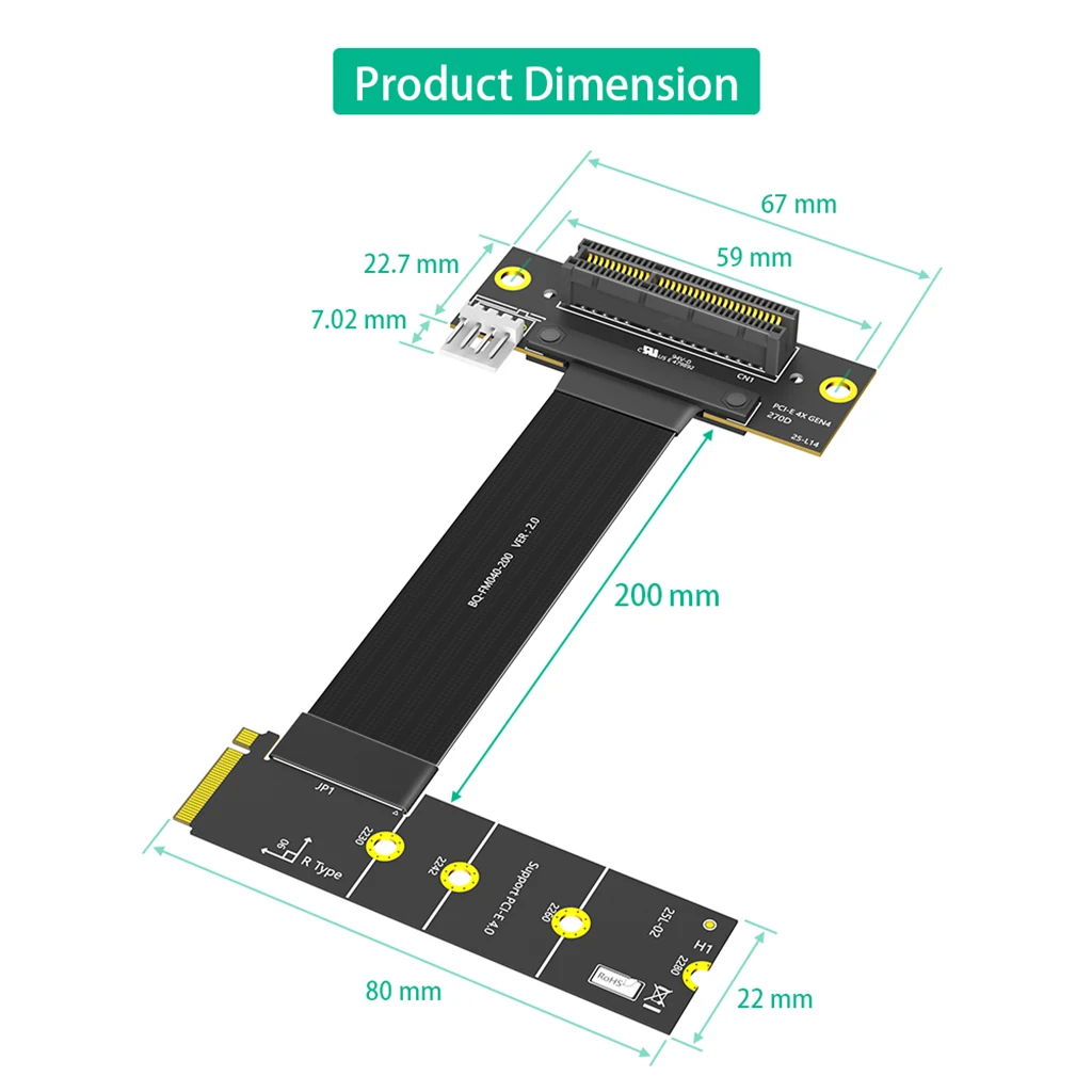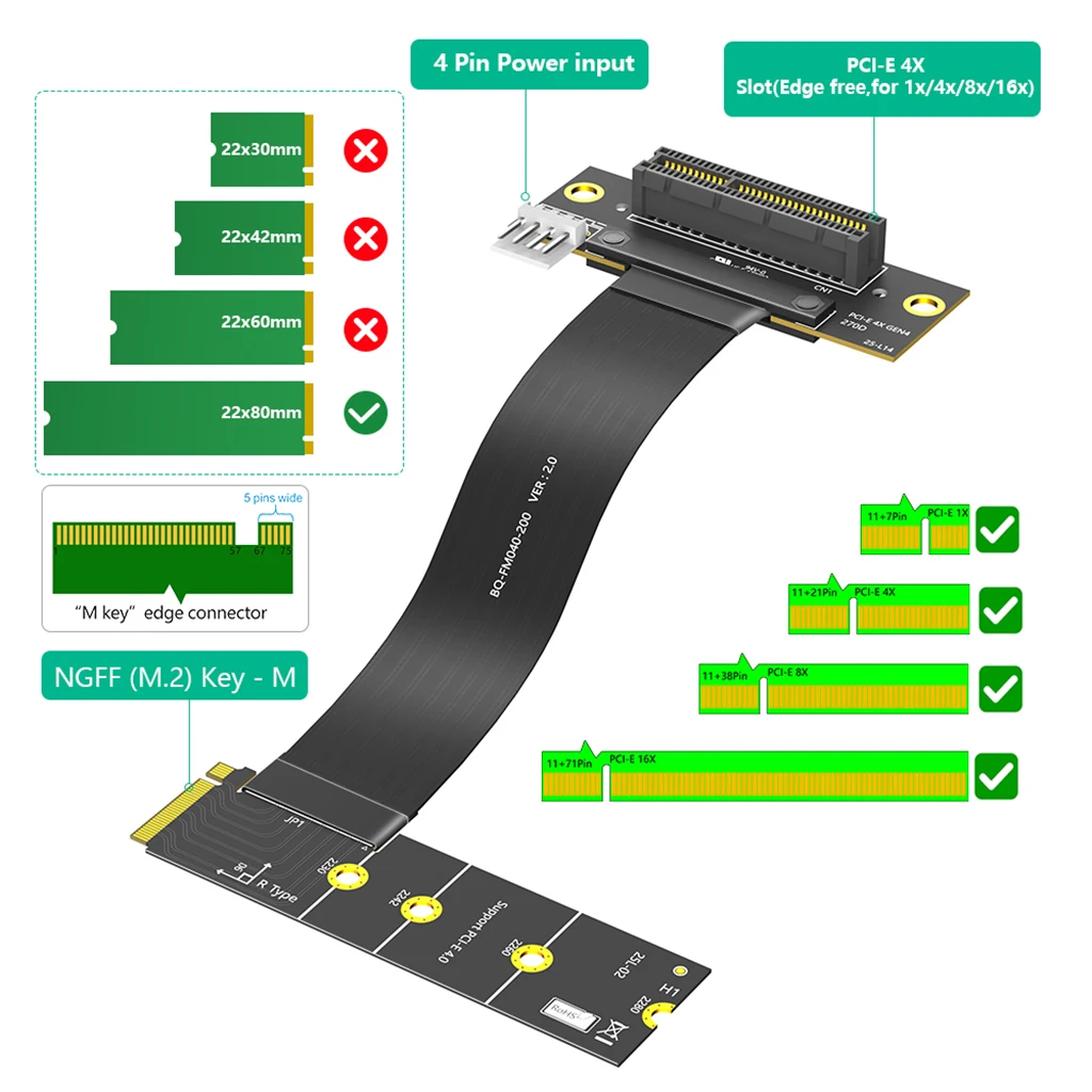2. Cable de alta velocidad: uso de cable FFC de alta calidad, soporte de alta frecuencia PCI-e 4.0 X4 transferencia estable