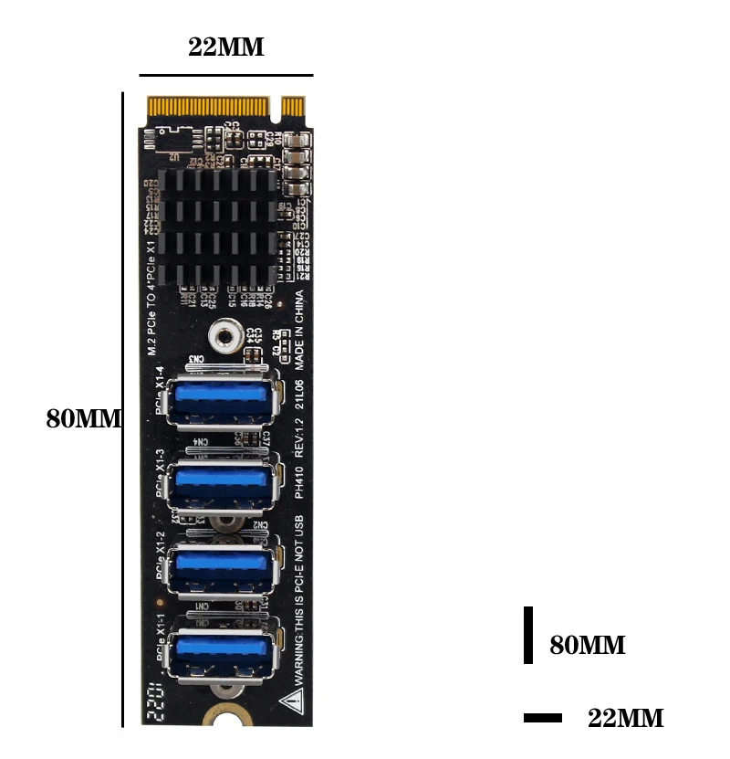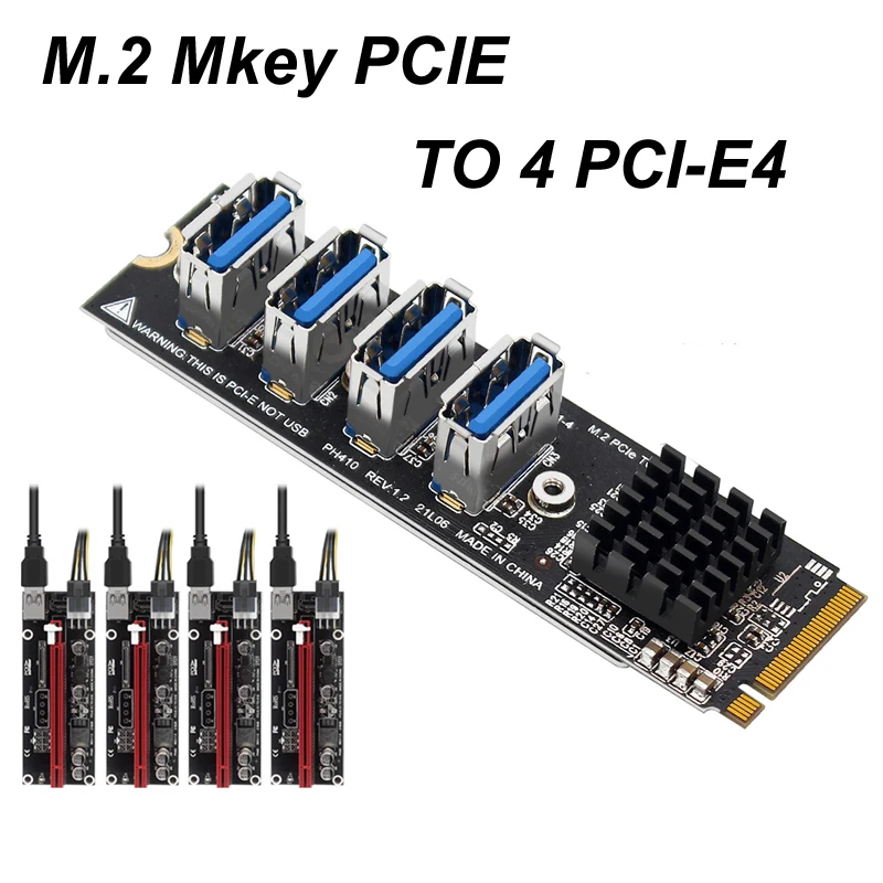 Comprar M.2 M KEY PCI-E Riser 4 elevadores en la tarjeta PCI Módulo adaptador PCI-E X1 de 4 puertos para ventana 1 a 4, placa de expansión ASM1184E
