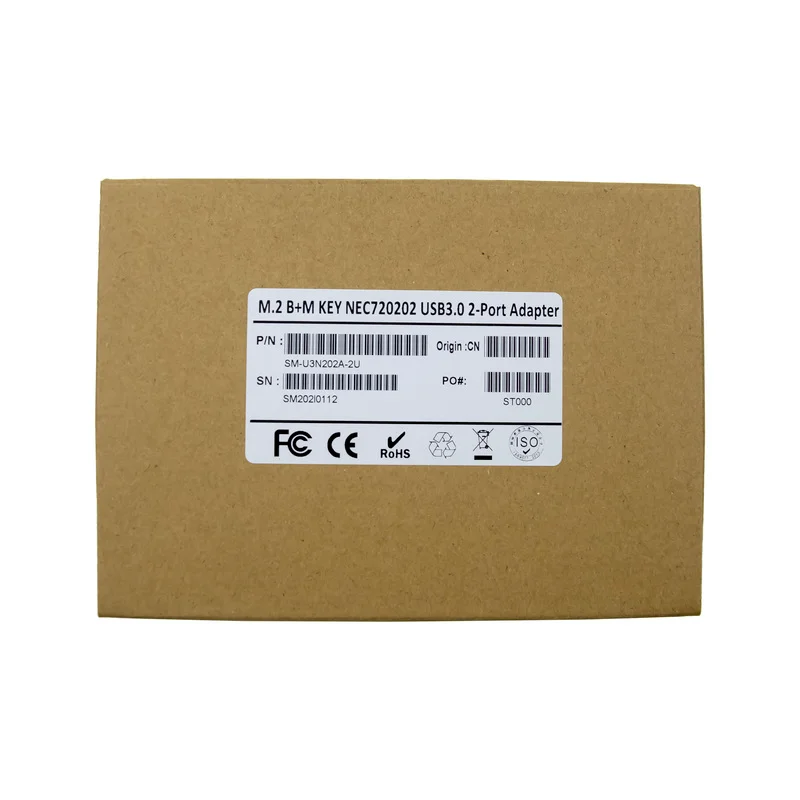 M.2 B+M NEC720201 La tarjeta USB3.0 es una tarjeta de expansión USB de alto rendimiento de grado industrial adecuada para dispositivos de interfaz USB, incluidas cámaras industriales, chasis SSD/HDD, unidades flash, cajas de reproducción VR, dispositivos digitales, etc.