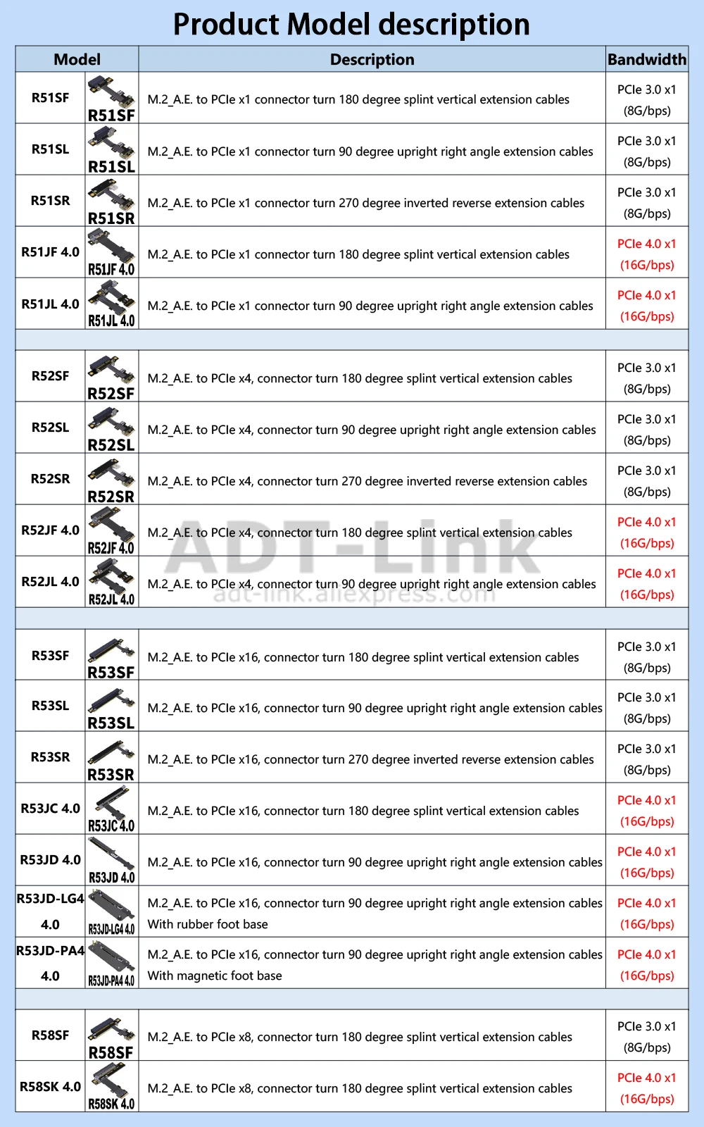 R51SF , R51SL , R51SR , R52SF , R52SL , R52SR , R53SF , R53SL , R53SR , R58SF (Velocidad PCIe 3,0)R51JF 4,0, R51JL 4,0,R52JF 4,0, R52JL 4,0,R53JC 4,0, R58SK 4,0 (Velocidad PCIe 4,0)