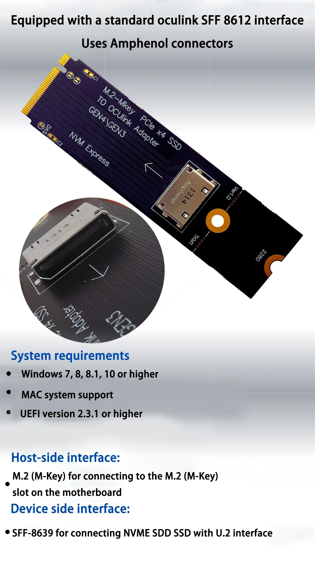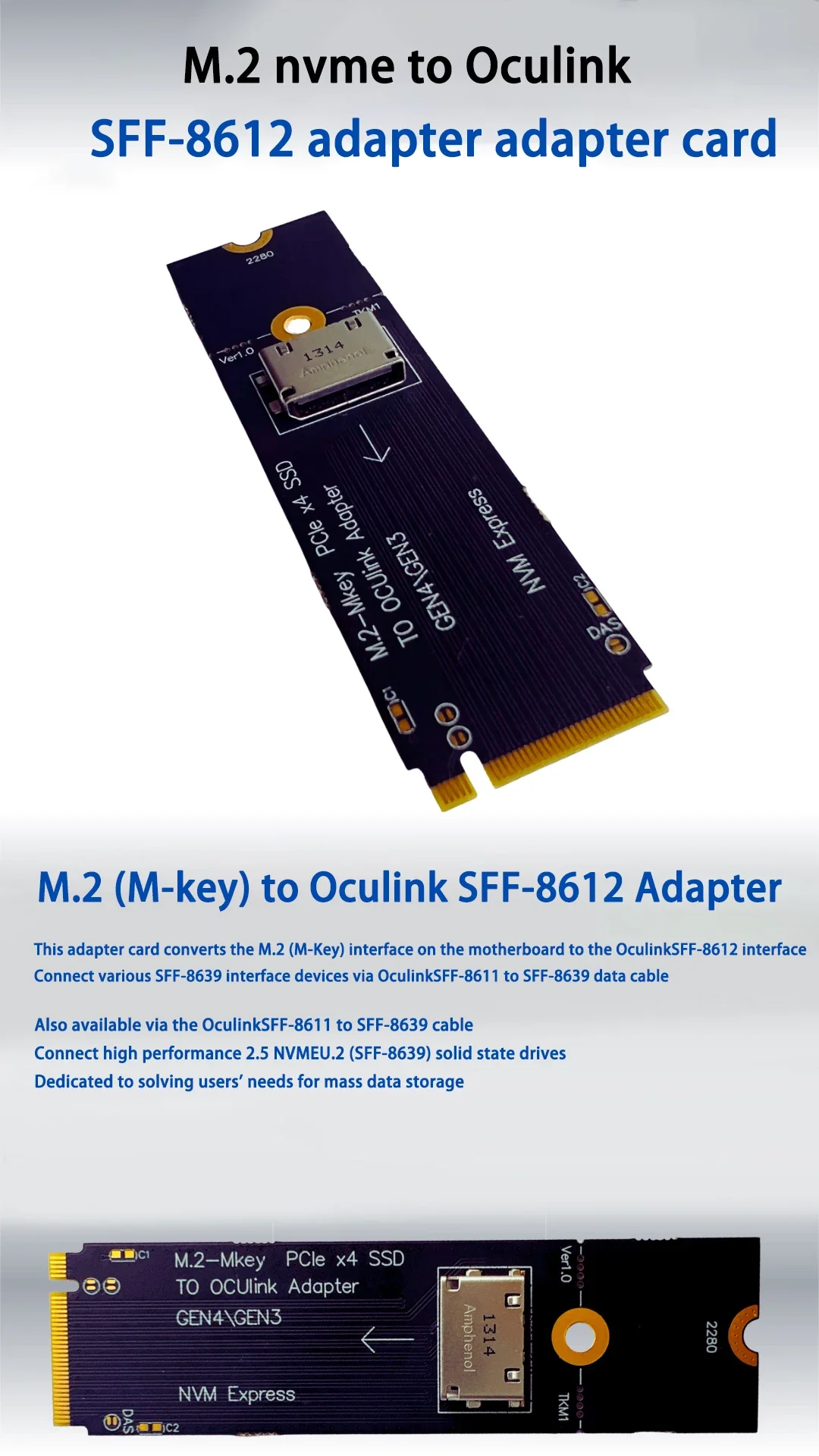 Comprar M.2 NVME M-Key a U.2 SFF-8639 Oculink SFF-8612 Adaptador PCI-E NGFF Tarjeta elevadora M.2 M-Key PCIE X4 SSD a OCuLink Adaptador Gen4 Gen3