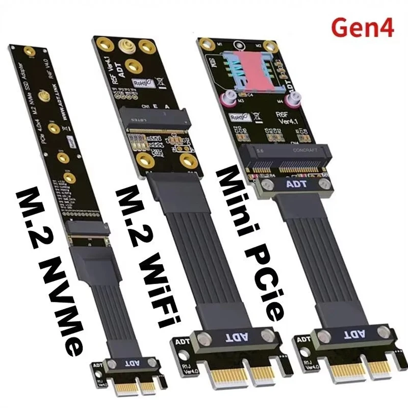 Cable de extensión ADT-Link PCIe 4.0 x1 a M.2 NVMe/M.2 WiFi/Mini PCIe