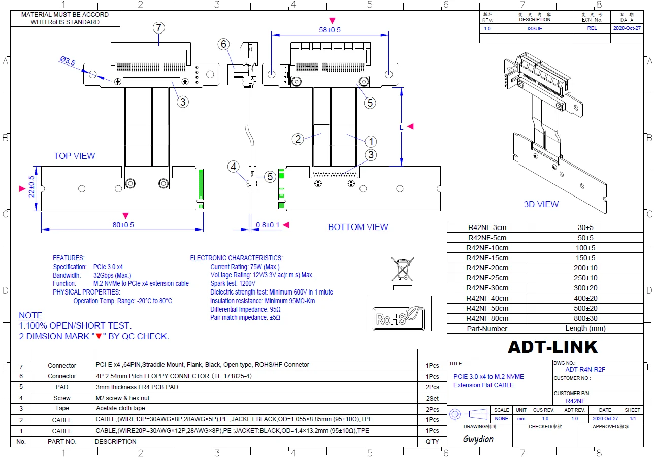 2.Ventaja de la longitud del cable, se puede personalizar de 3 cm a 1 metro, el adaptador se vende en nuestra tienda, la impedancia del cable es baja, la longitud del cable dentro de 60 cm admite PCIe3.0 a máxima velocidad.