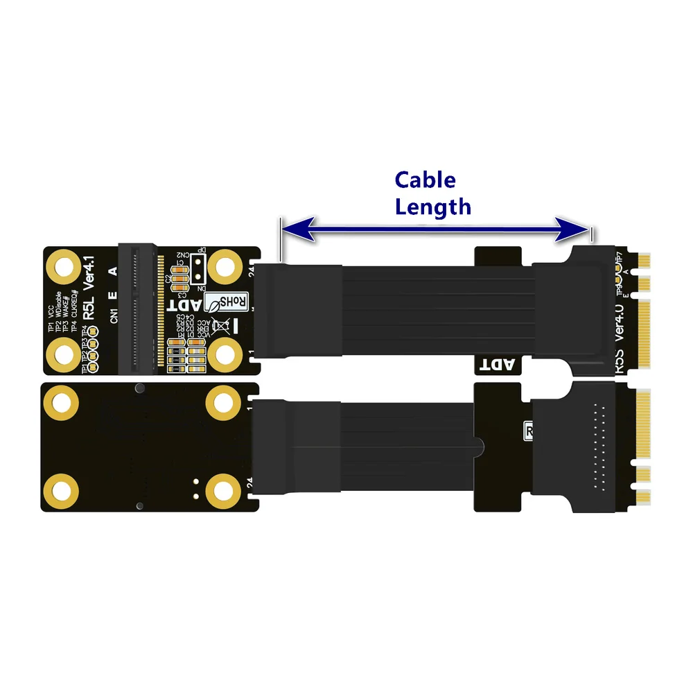 2.Ventaja de la longitud del cable, se puede personalizar de 3 cm a 1 metro, el adaptador se vende en nuestra tienda, la impedancia del cable es baja, la longitud del cable dentro de 60 cm admite PCIe4.0 a máxima velocidad.
