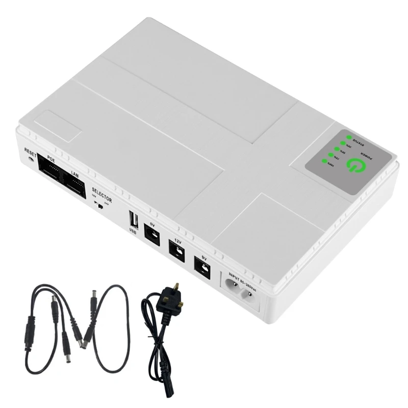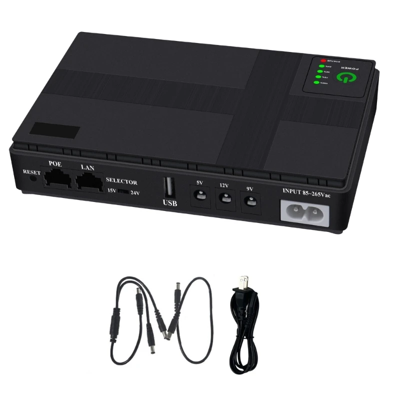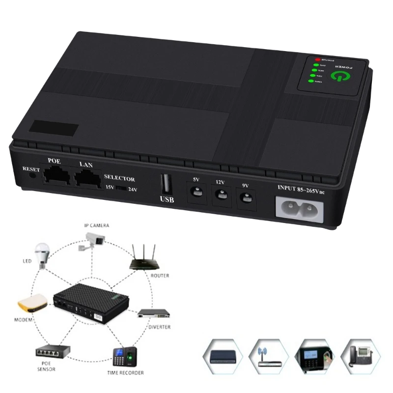 El mini paquete de baterías de respaldo con fuente de alimentación ininterrumpida puede alimentarse para la mayoría de los equipos LAN POE de 5 V, 9 V y 12 V.