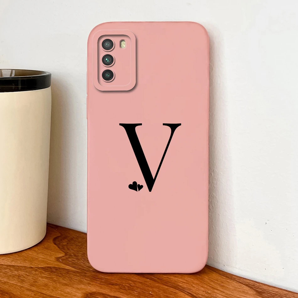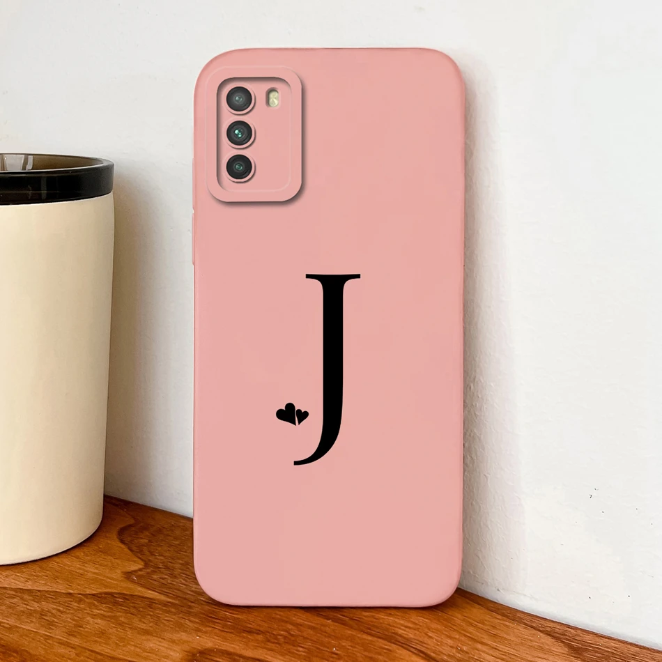 Para POCO M3 Pro funda de silicona líquida suave fundas de teléfono con letras de corazón simples para POCO M 3 protección de cámara cubierta trasera anticaída