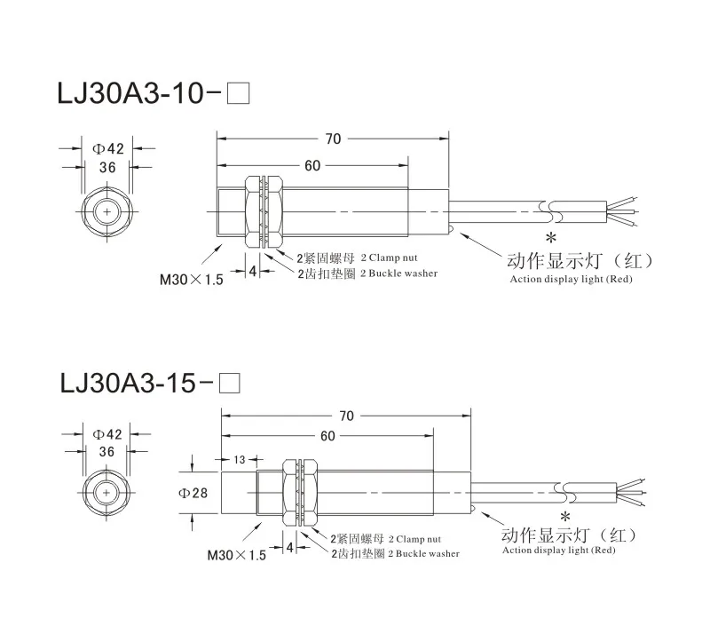 LJ30-15-Z/EX: CC Dos cables normalmente abierto 30 mm de diámetro; Distancia de detección de 15 mm