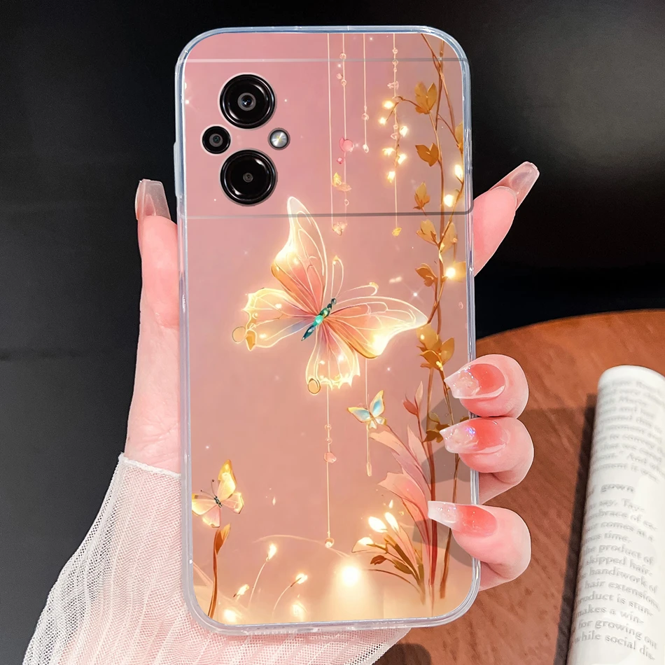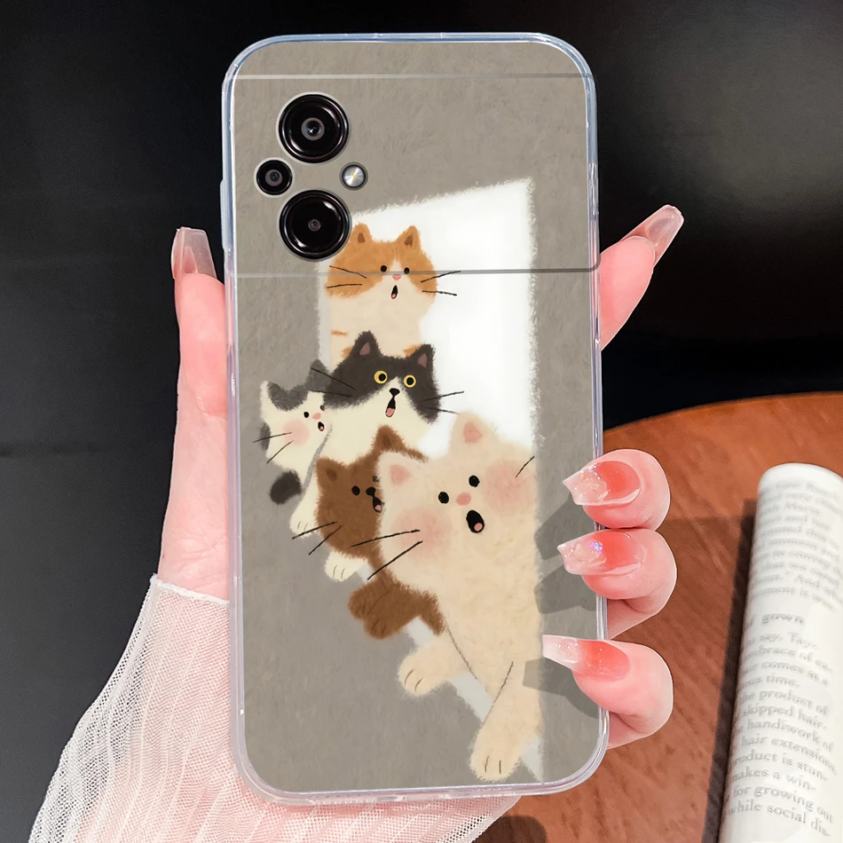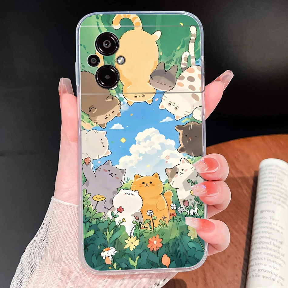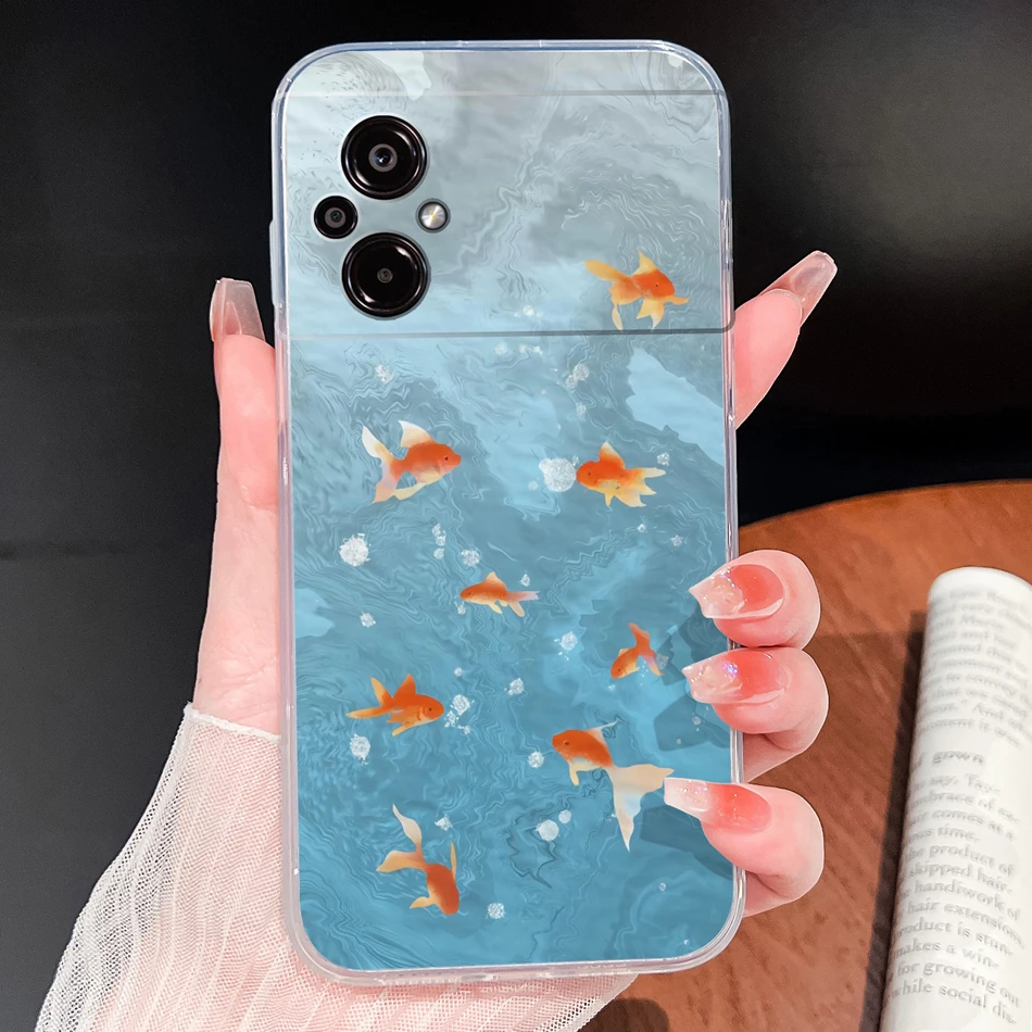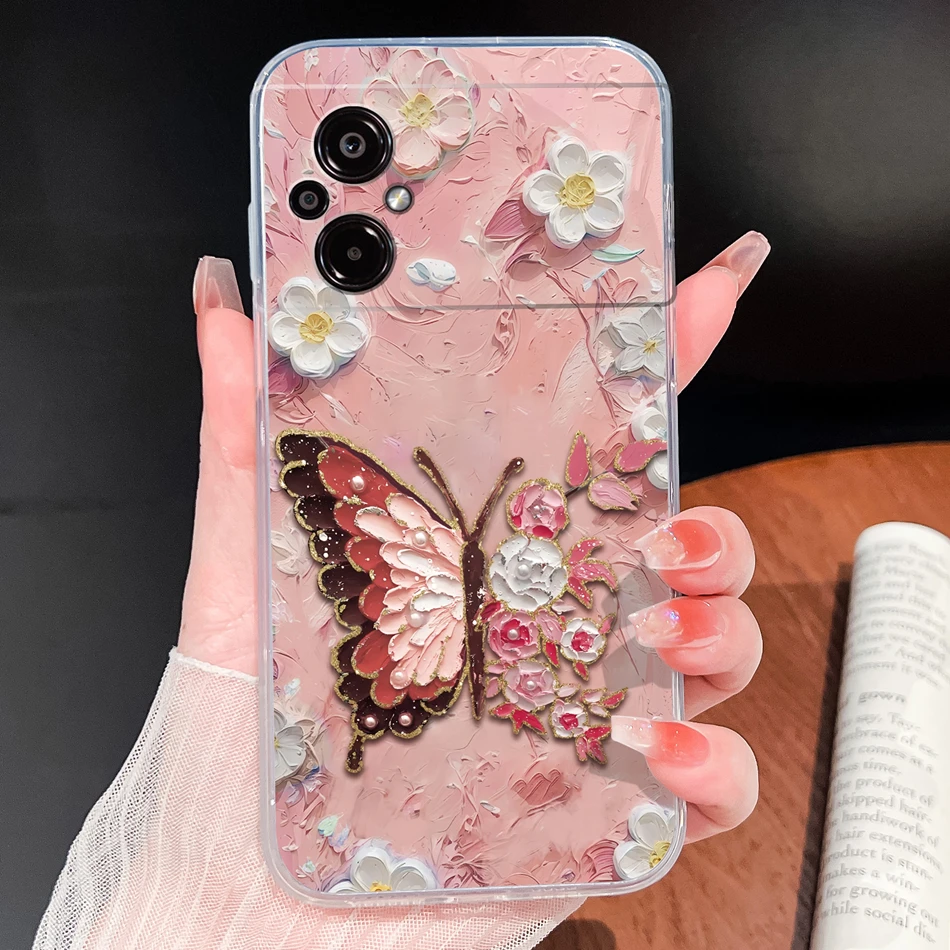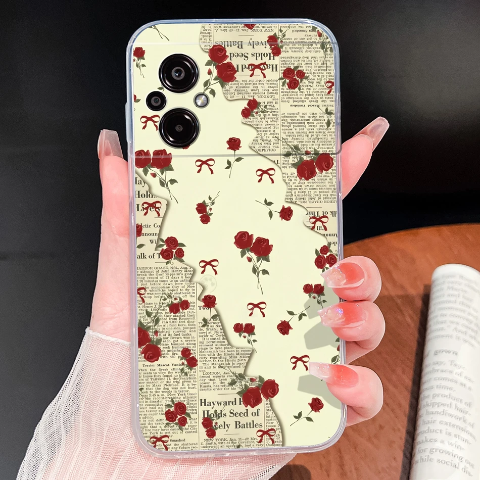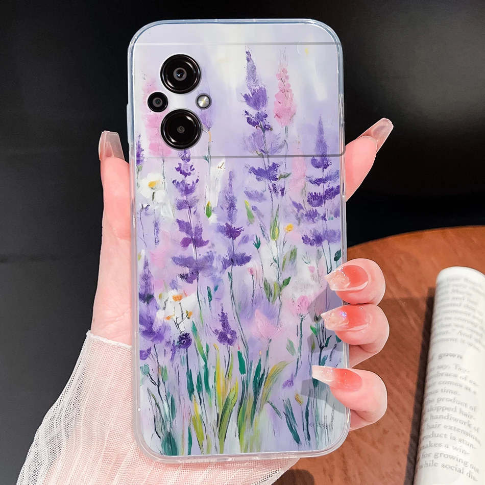 Para POCO M5 M5S Funda de teléfono con patrones de flores encantadoras suave delgada TPU transparente Funda ligera de silicona para Poco M 5 Funda Shell