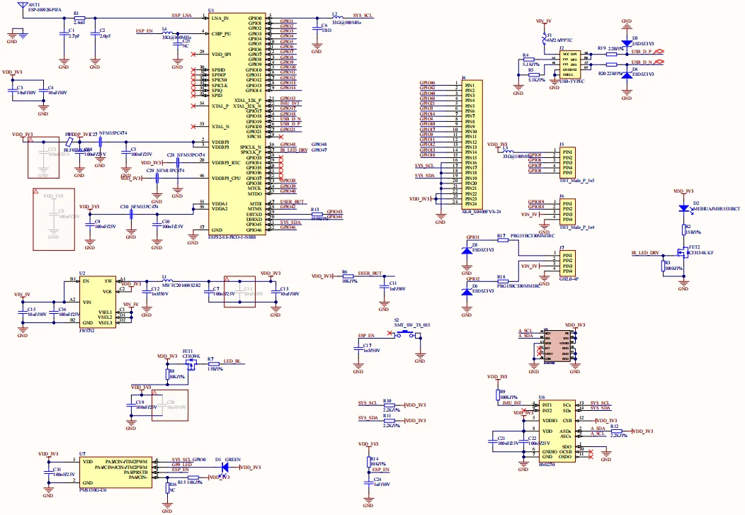 SoC: ESP32-S3-PICO-1-N8R8 @ procesador Xtensa LX7 de doble núcleo, hasta 240MHz @ USB-OTG