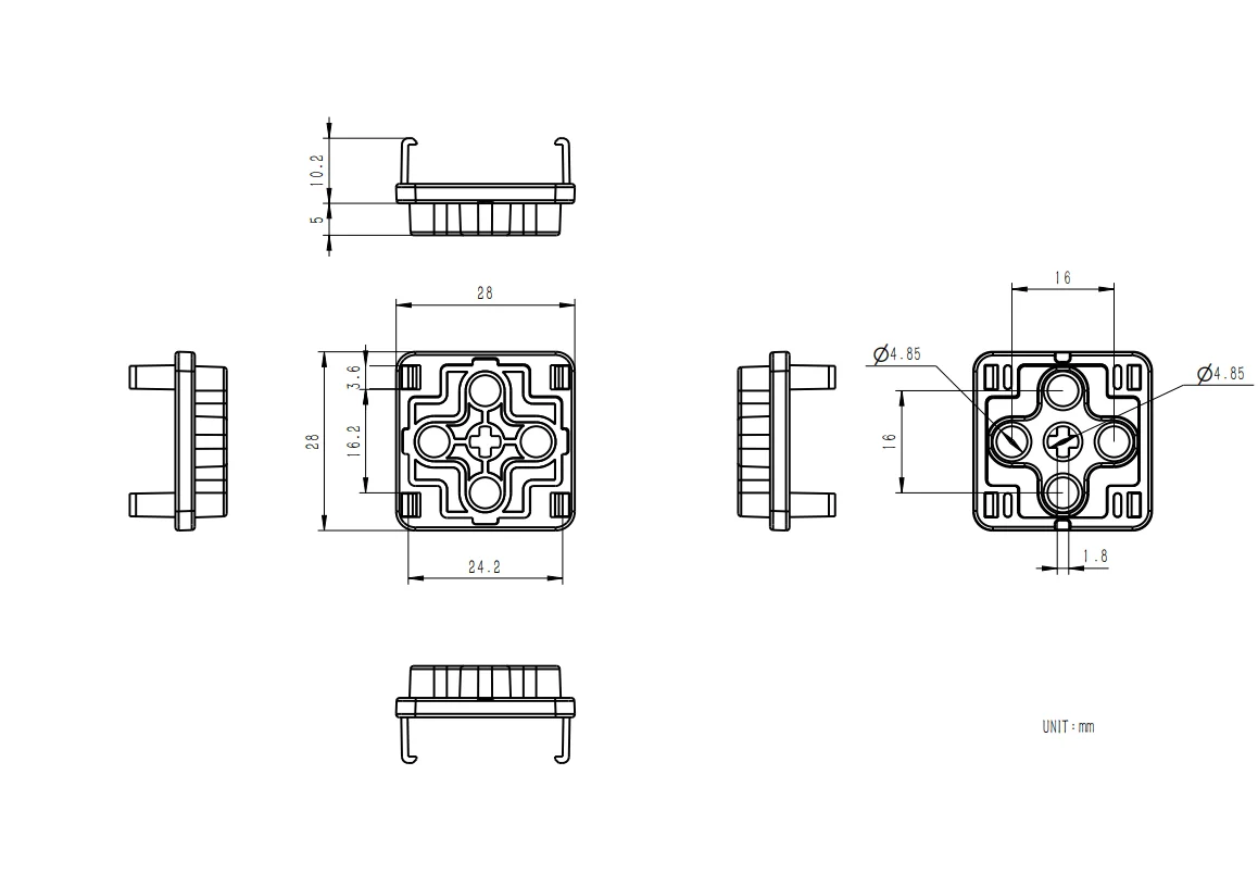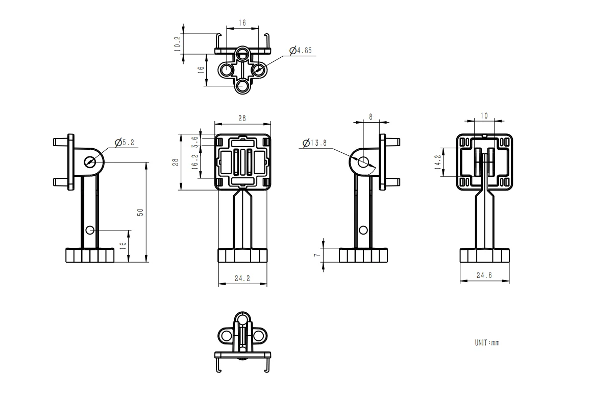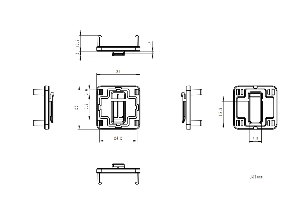 Tamaño del producto: Clip trasero: 28*28*10,2 mm; Montaje GoPro: 61*28*26 mm; Pieza Técnica LEGO: 28*28*8 mm; Ladrillo LEGO: 28*28*6 mm