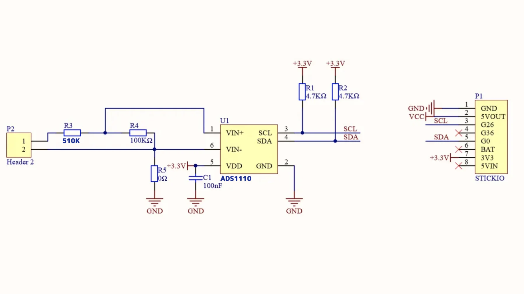 El propio ADS1110 puede aceptar una entrada diferencial de -5 ~ +5 V, pero hemos limitado la entrada a 0 ~ 12 V agregando el diseño del circuito periférico de este IC.