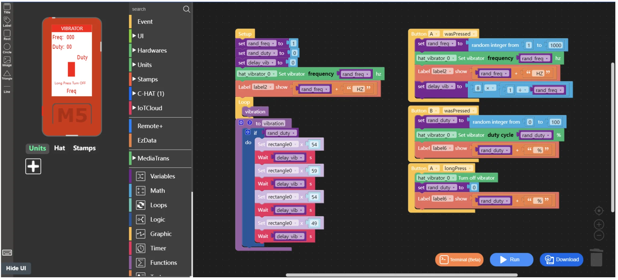 Vibrador de sombreroes un motor vibratorio adaptado a laSerie M5StickC/C-Plus.Está hecho de un parche cilíndrico con núcleo de hierro.Z3OC1T8219731 motor.La velocidad del motor es12000 RPM.Este producto puede producir variosefectos de vibración, como por ejemplo:aumentar o disminuir el nivel de vibración, producir efecto "clic", producir diferentes efectos de timbre e incluso vibrar con la entrada de música/audio.Se puede aplicar a todo tipo de productos electrónicos, comomensaje de informaciónytocarcomentarios.