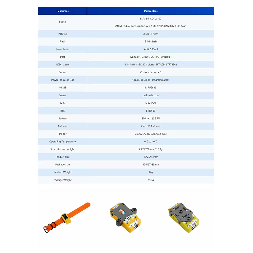 2.Ricos recursos de hardware:A pesar de su tamaño compacto, este dispositivo integra una variedad de recursos de hardware, incluidos infrarrojos, RTC, micrófono, LED, IMU, botones y un timbre, y ofrece amplias funciones para diversos proyectos.