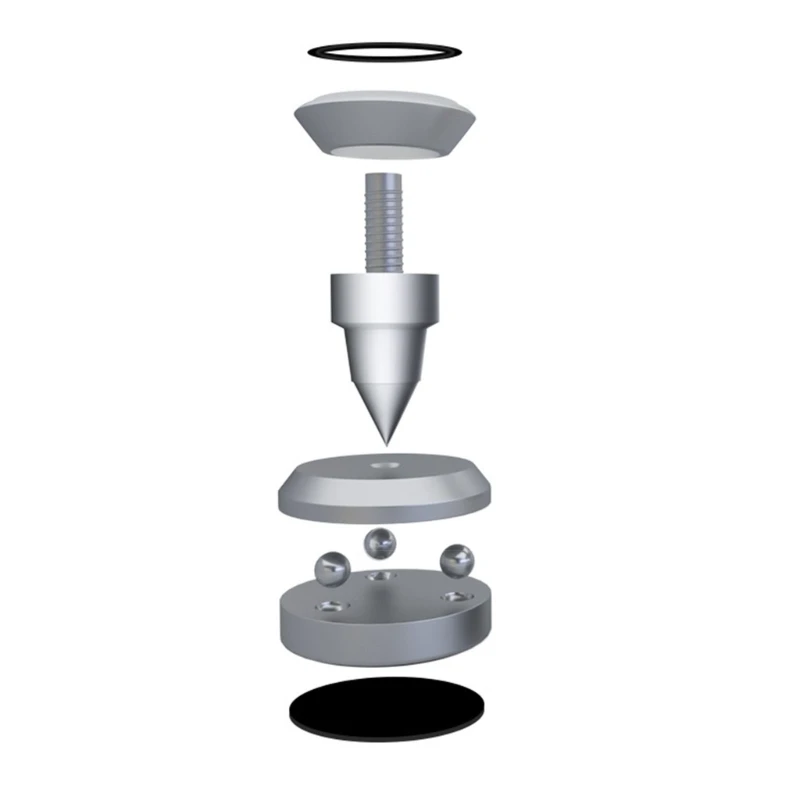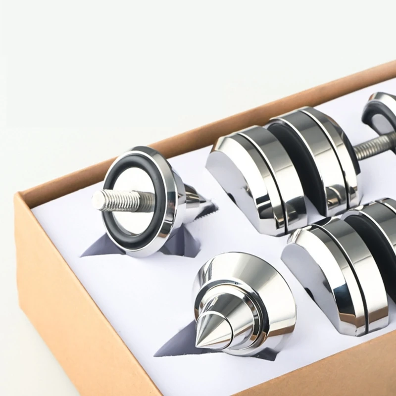 Steel balls shock absorbtion, acoustic shock absorbtion foot pad, double-layer stainless steel gaskets, triangular steel balls suspension shock absorbtion particles in the middle, and rubber anti-skid gaskets at the bottom can effectively shock absorbtion.