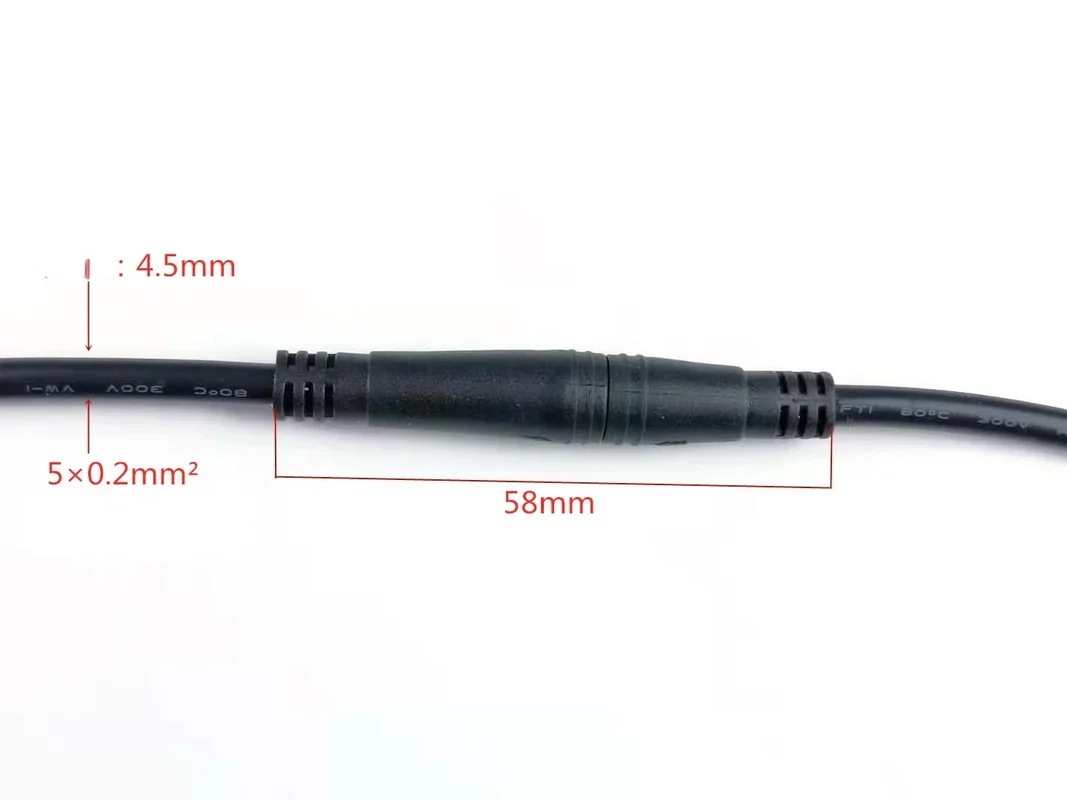 13. Conventional products: The connector material is PVC, the wire type is CCC/VDE national standard RVV sheathed wire, and the conventional length is 200mm for both male and female.