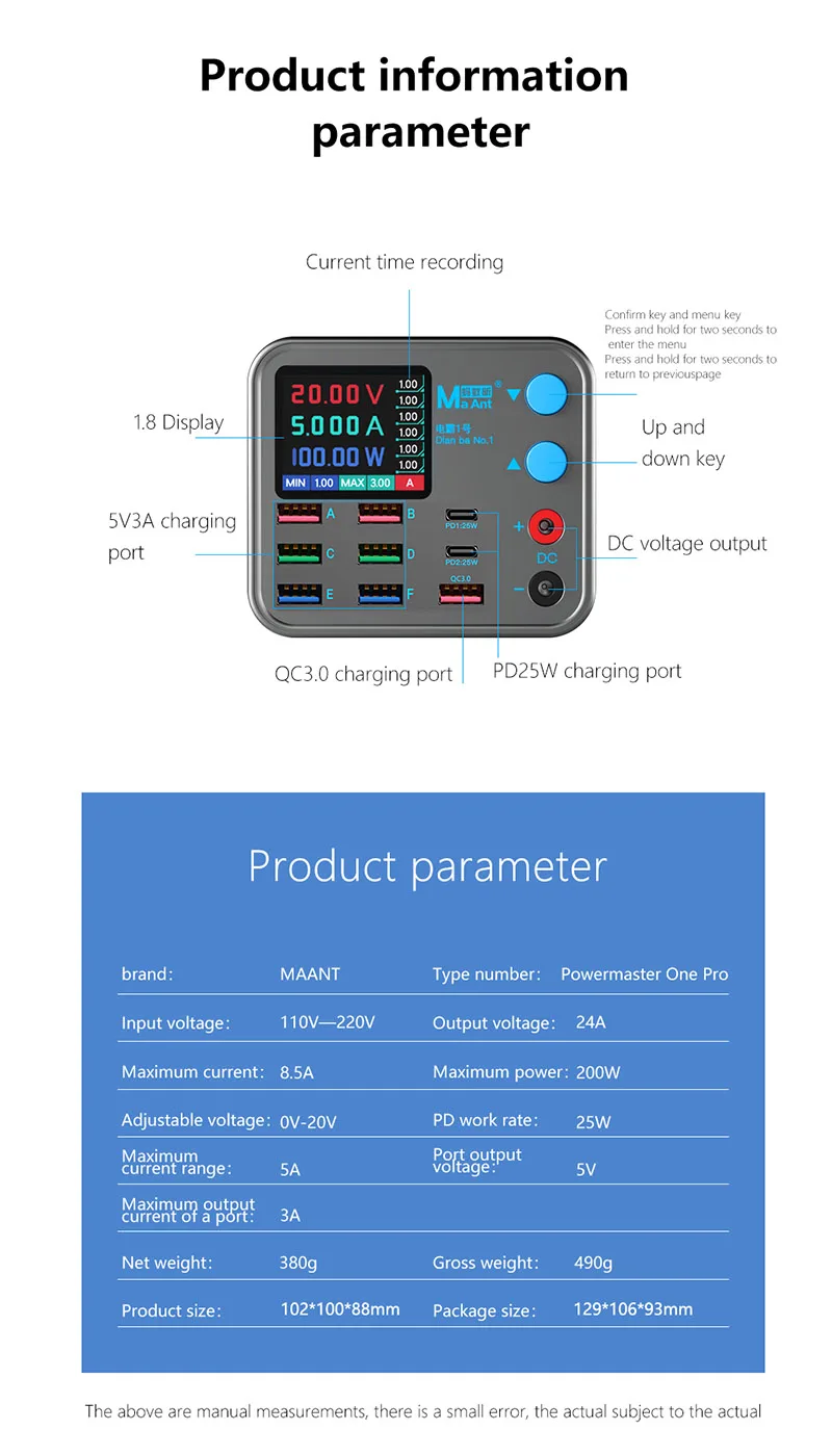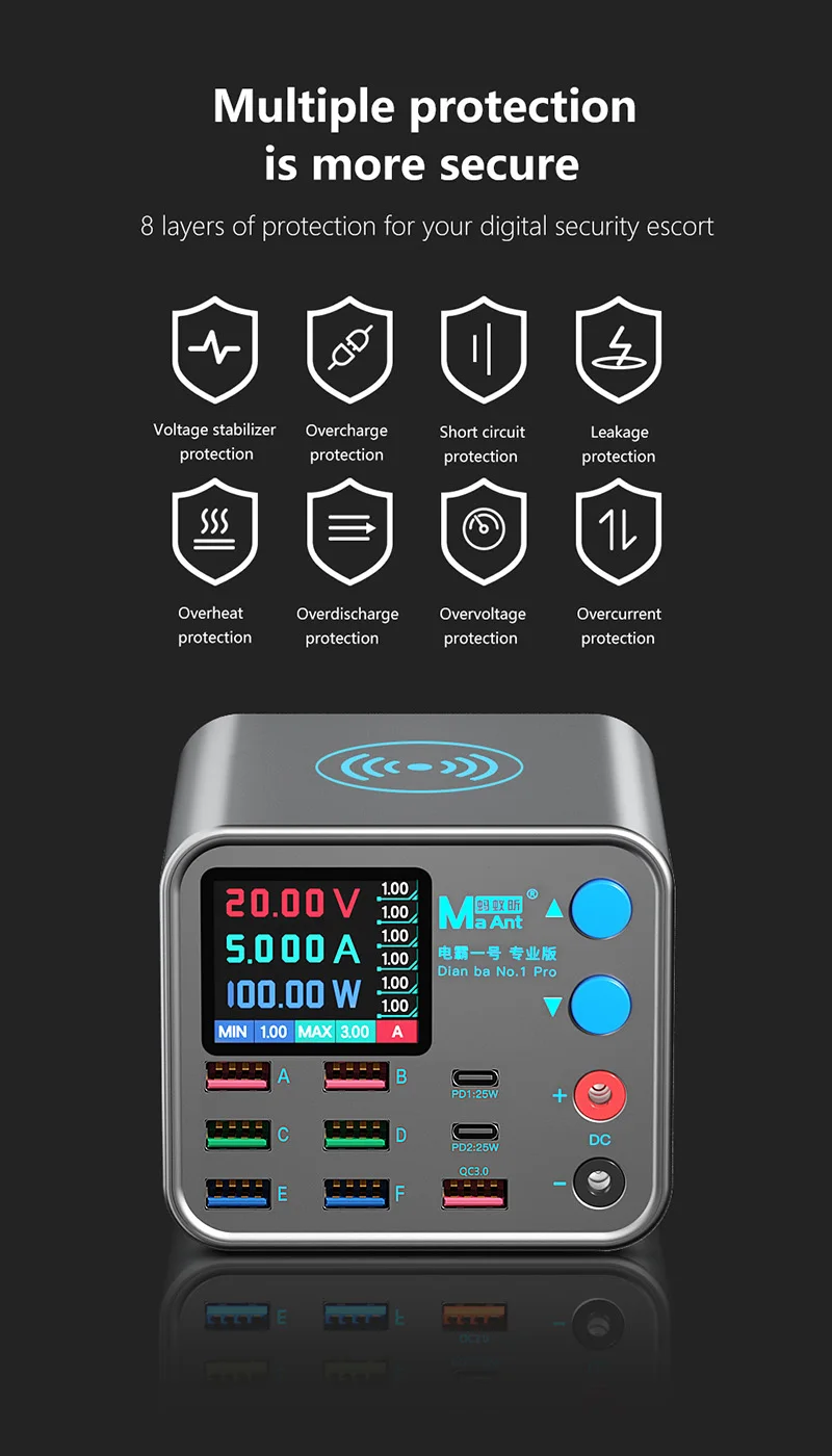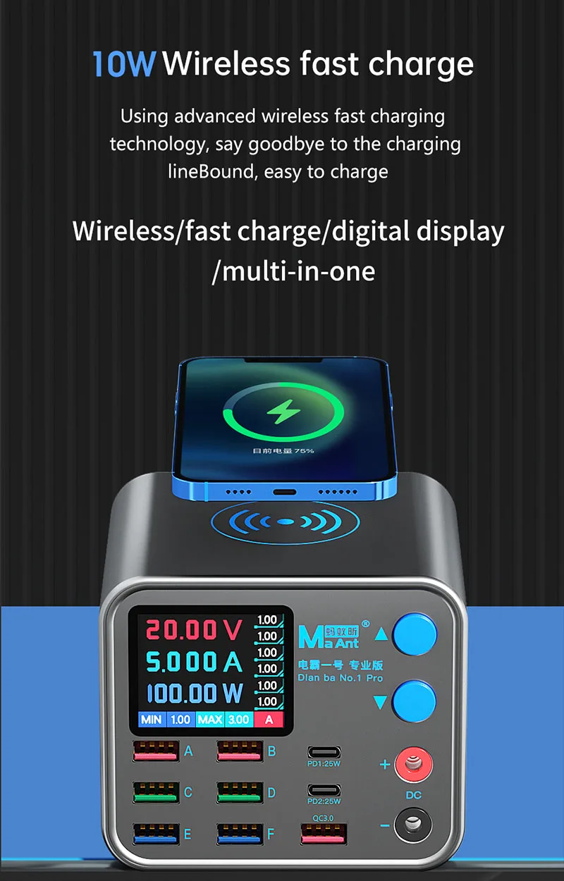 Cargador inalámbrico multifuncional MaAnt para teléfono móvil, tableta Dianba 1 Pro, herramienta de carga rápida de detección de cortocircuito de alta precisión