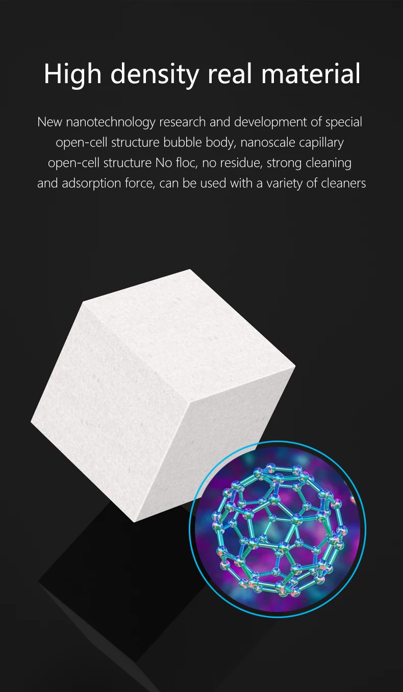 -Material real de alta densidad, nueva investigación y desarrollo de nanotecnología de cuerpo de burbuja de estructura de celda abierta especial, estructura de celda abierta capilar a nanoescala sin flóculos, sin residuos, fuerte fuerza de limpieza y adsorción, se puede utilizar con una variedad de limpiadores