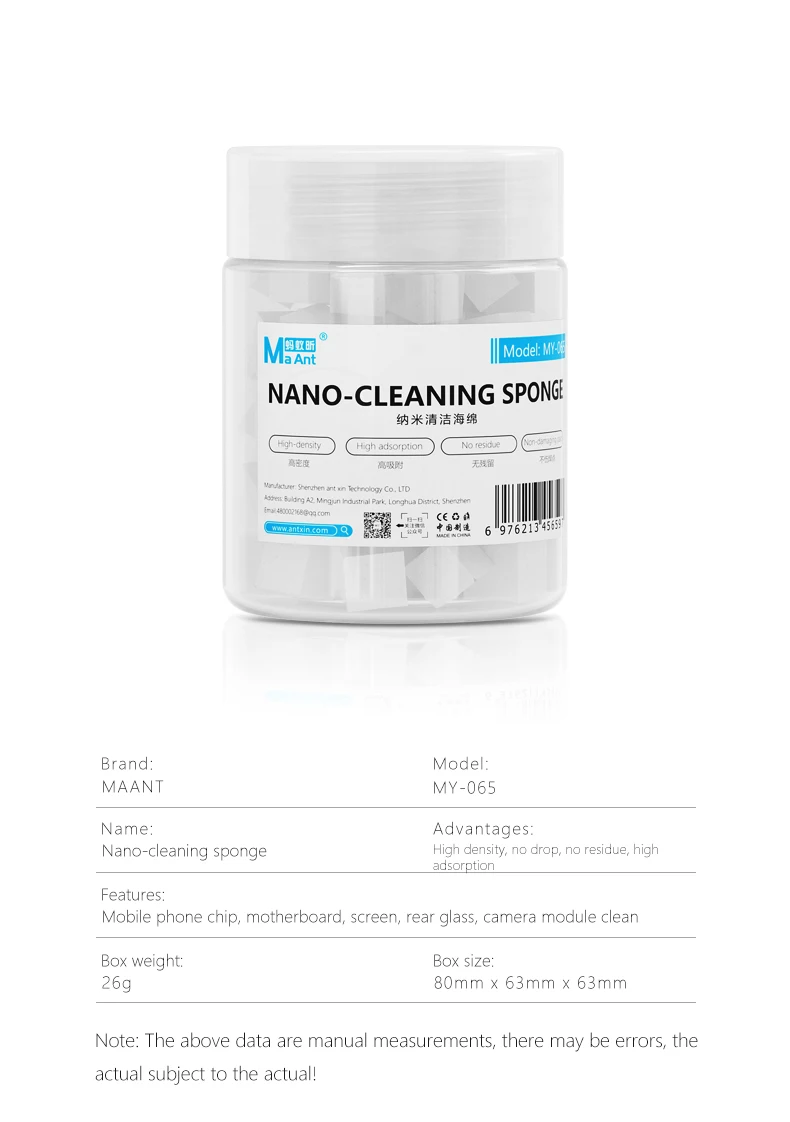 MaAnt MY-065 Nano esponja de limpieza de alta densidad para placa base de teléfono móvil Chip cubierta trasera marco herramienta de esponja de limpieza de pantalla