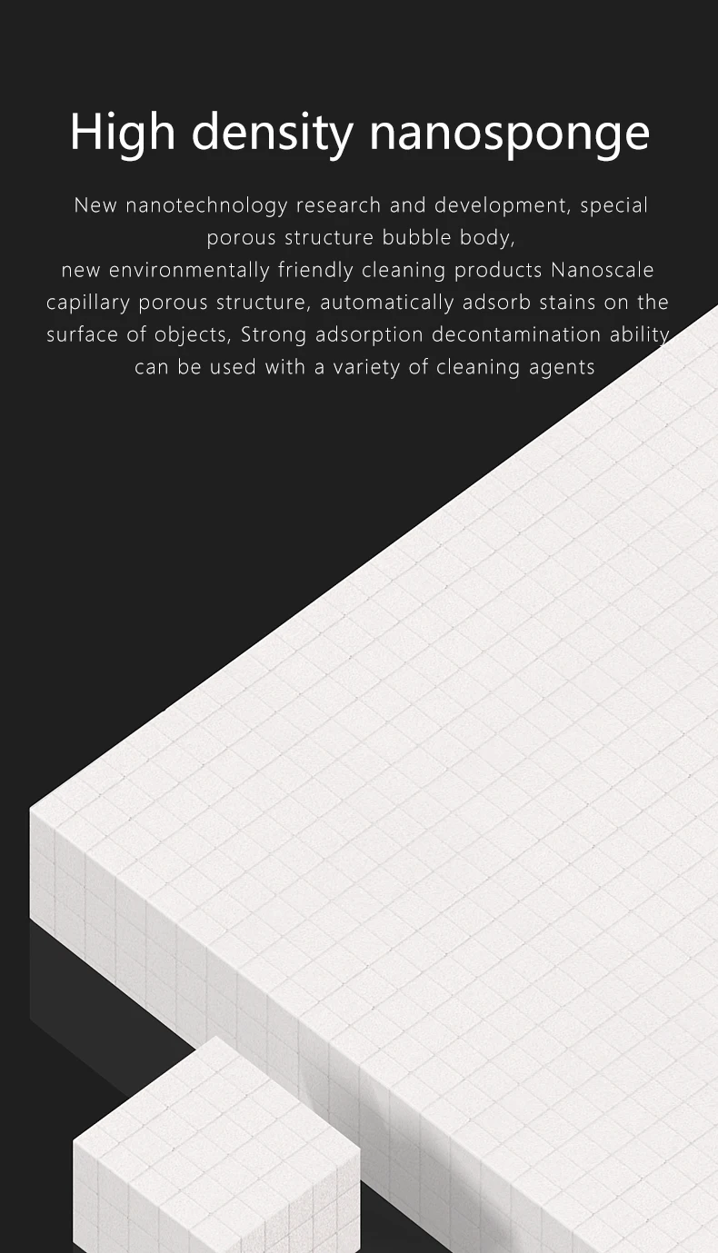 -Nanoesponja de alta densidad, nueva investigación y desarrollo de nanotecnología, cuerpo de burbuja de estructura porosa especial, nuevos productos de limpieza ecológicos, estructura porosa capilar a nanoescala, adsorbe automáticamente las manchas en la superficie de los objetos, la fuerte capacidad de descontaminación por adsorción se puede utilizar con una variedad de agentes de limpieza