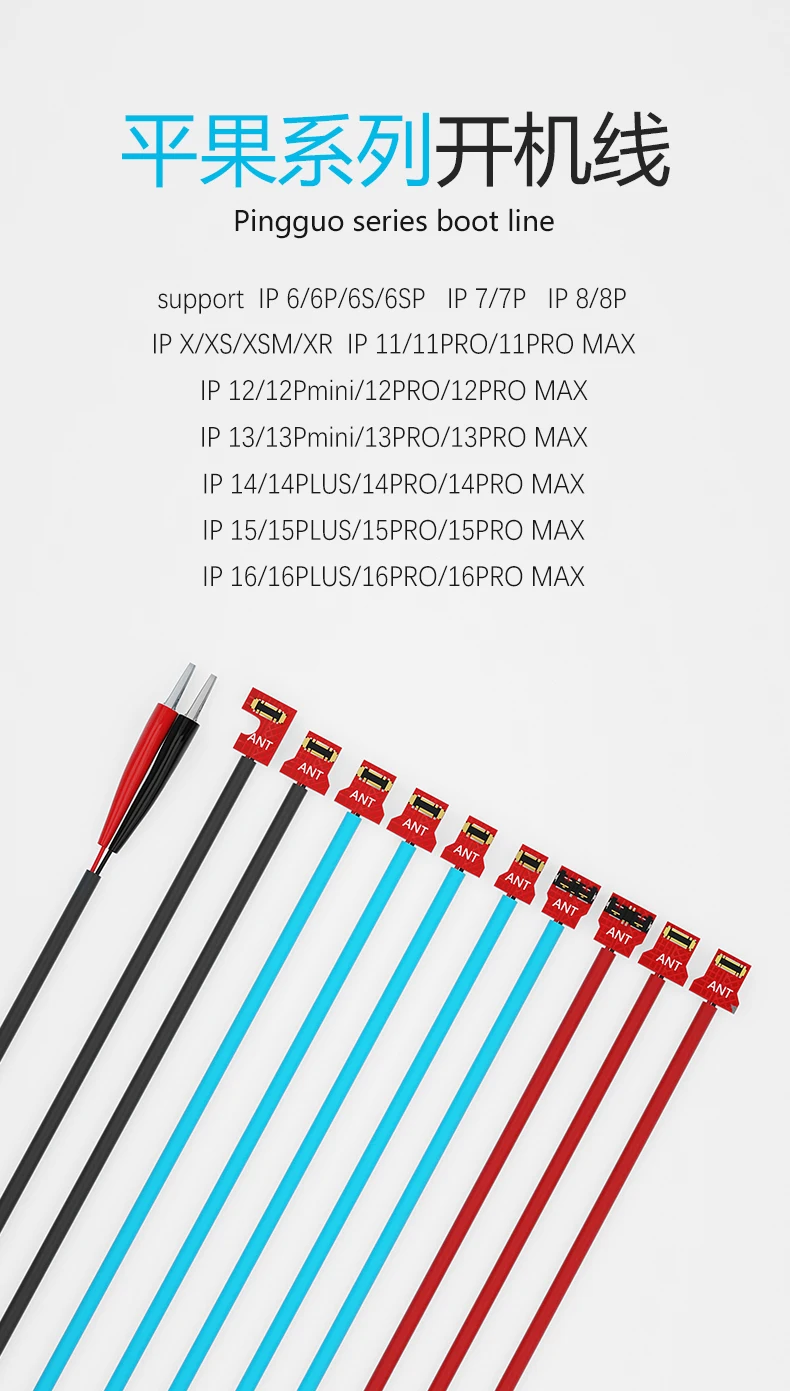 Si usted es un técnico profesional o un aficionado a la reparación apasionado, el Cable de arranque MaAnt M076es tu mejor compañero para alimentar iPhones desde 6 a 16 h. m.durante mantenimiento, pruebas o diagnósticos.Con su alta flexibilidad, ajuste de precisión, y diseño para evitar el aire, ¡completarás las tareas de forma más rápida, segura y eficiente!🔧⚡