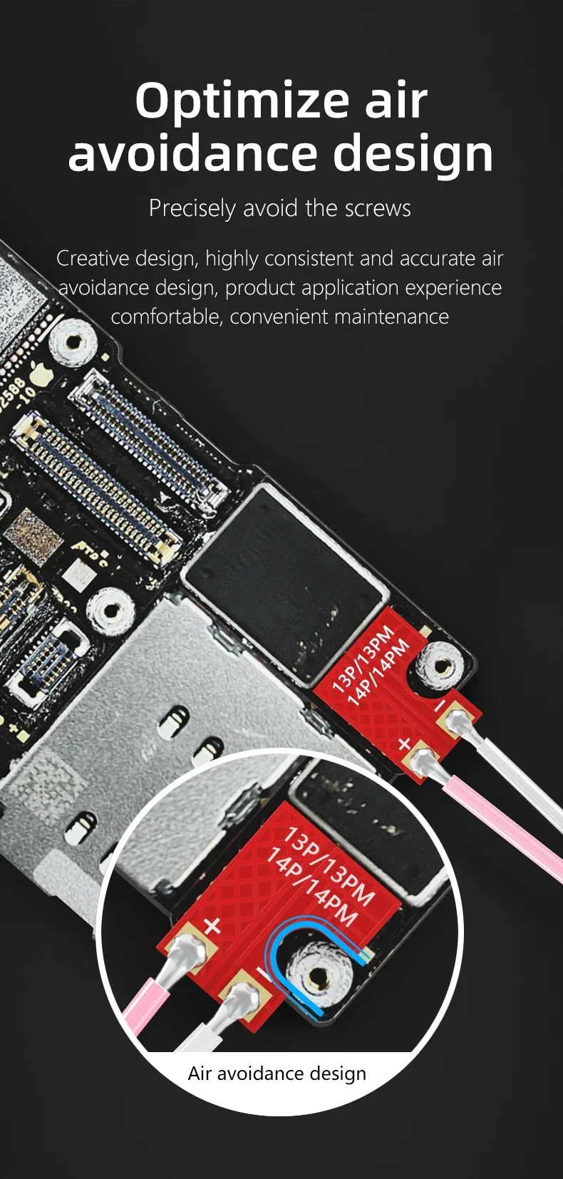 Evita perfectamente agujeros para tornillos y áreas de IC: conexión más segura y reparaciones más fáciles.