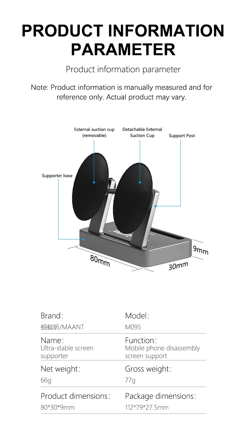 Soporte estable gigante MaAnt M095 para reparación de teléfonos móviles, soporte de extracción de placa base de fuerte succión, accesorio de abrazadera de montaje lateral