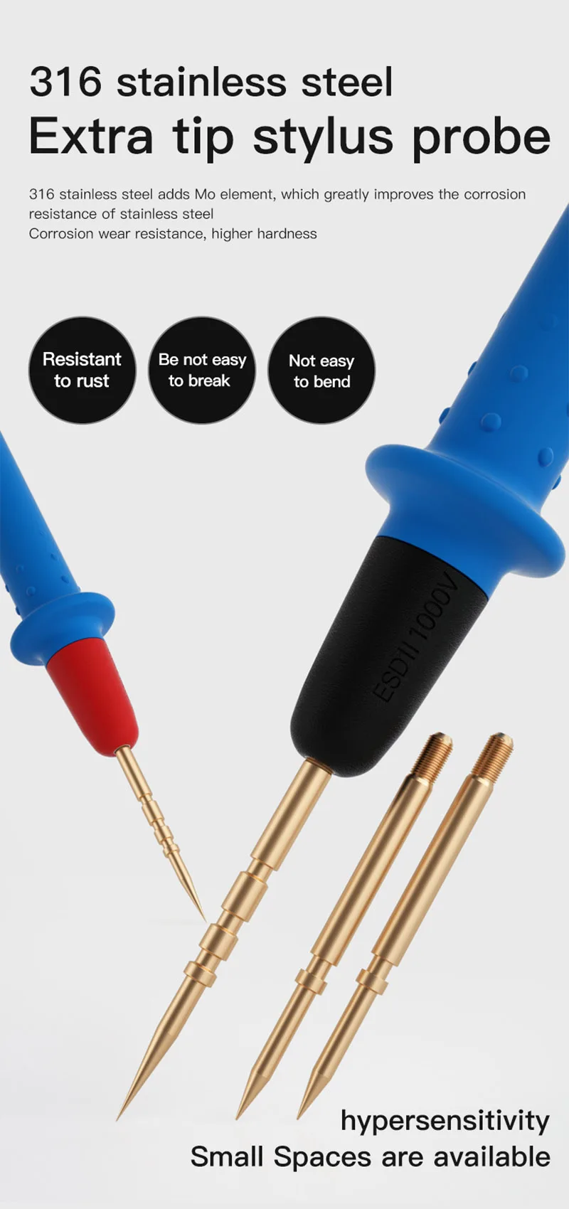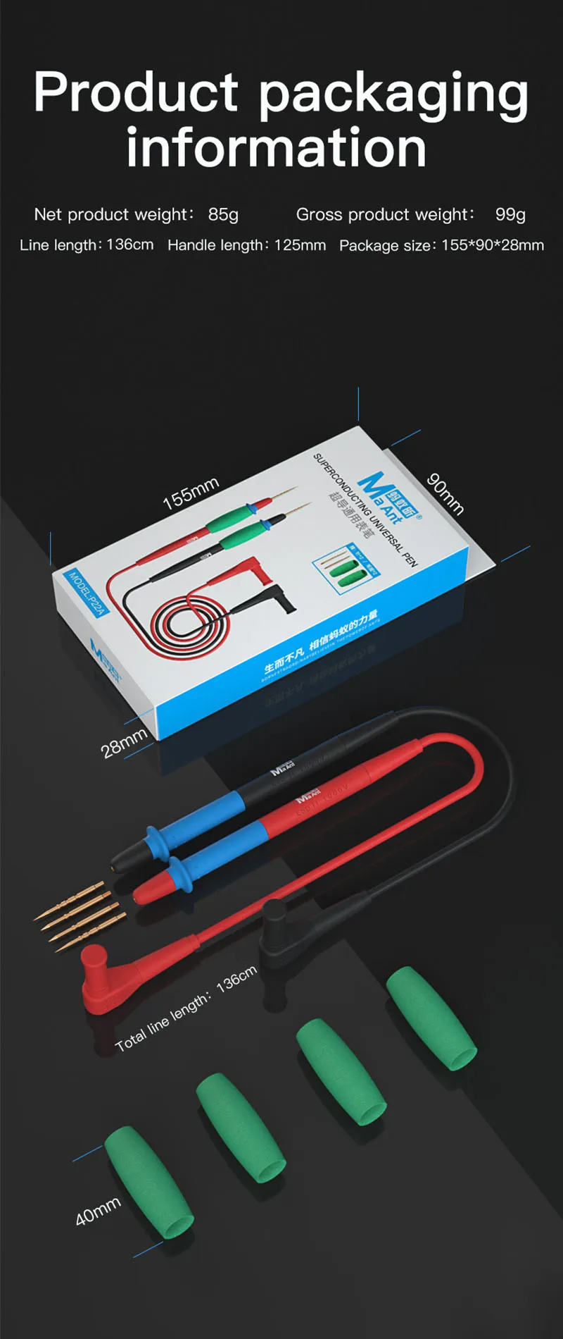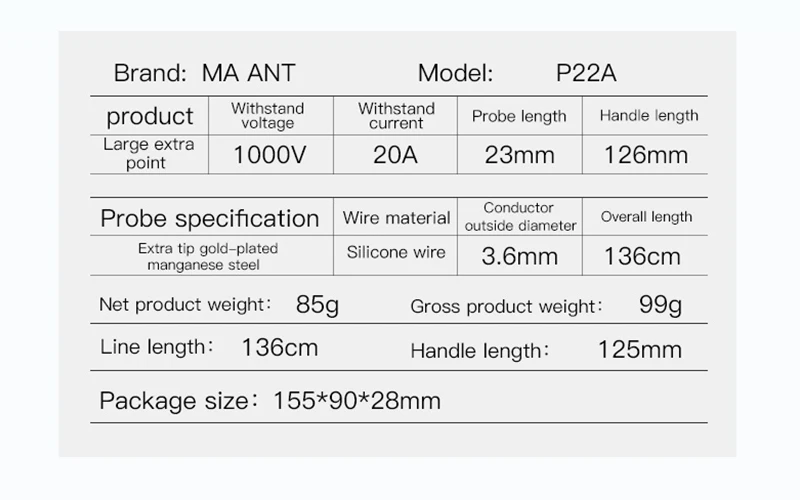 Cables de prueba superconductores universales MaAnt P22A 20A, alta dureza, resistencia a altas temperaturas, Extra multímetro de punta, sonda Stylus