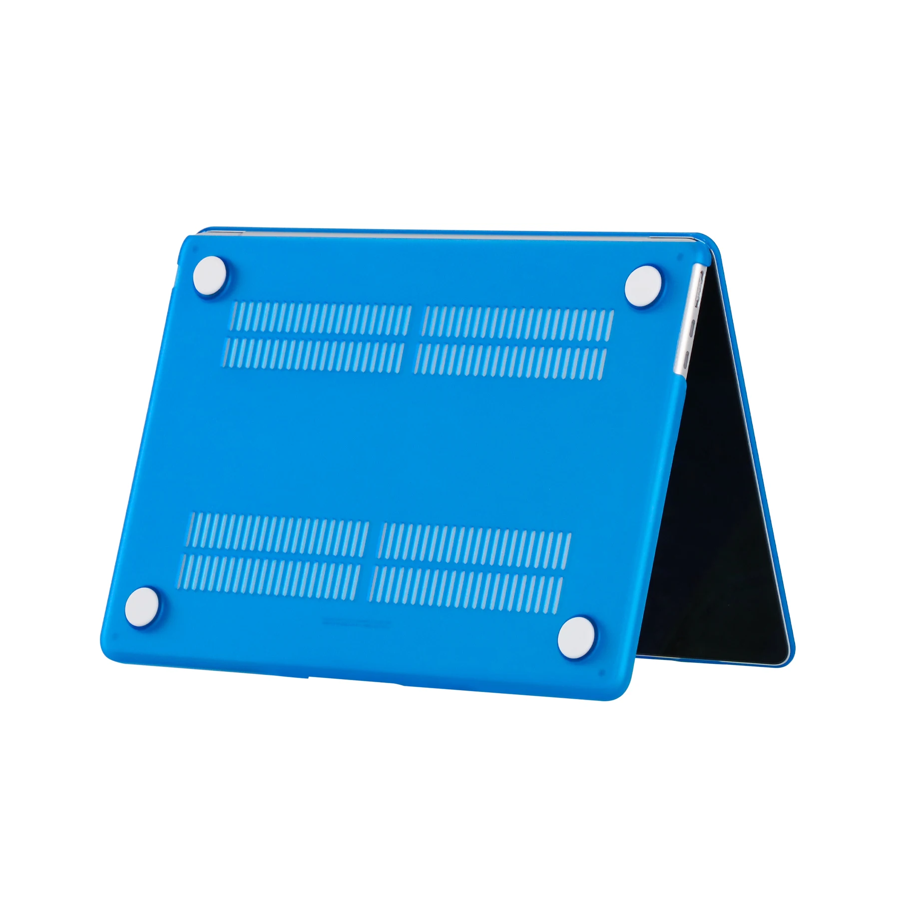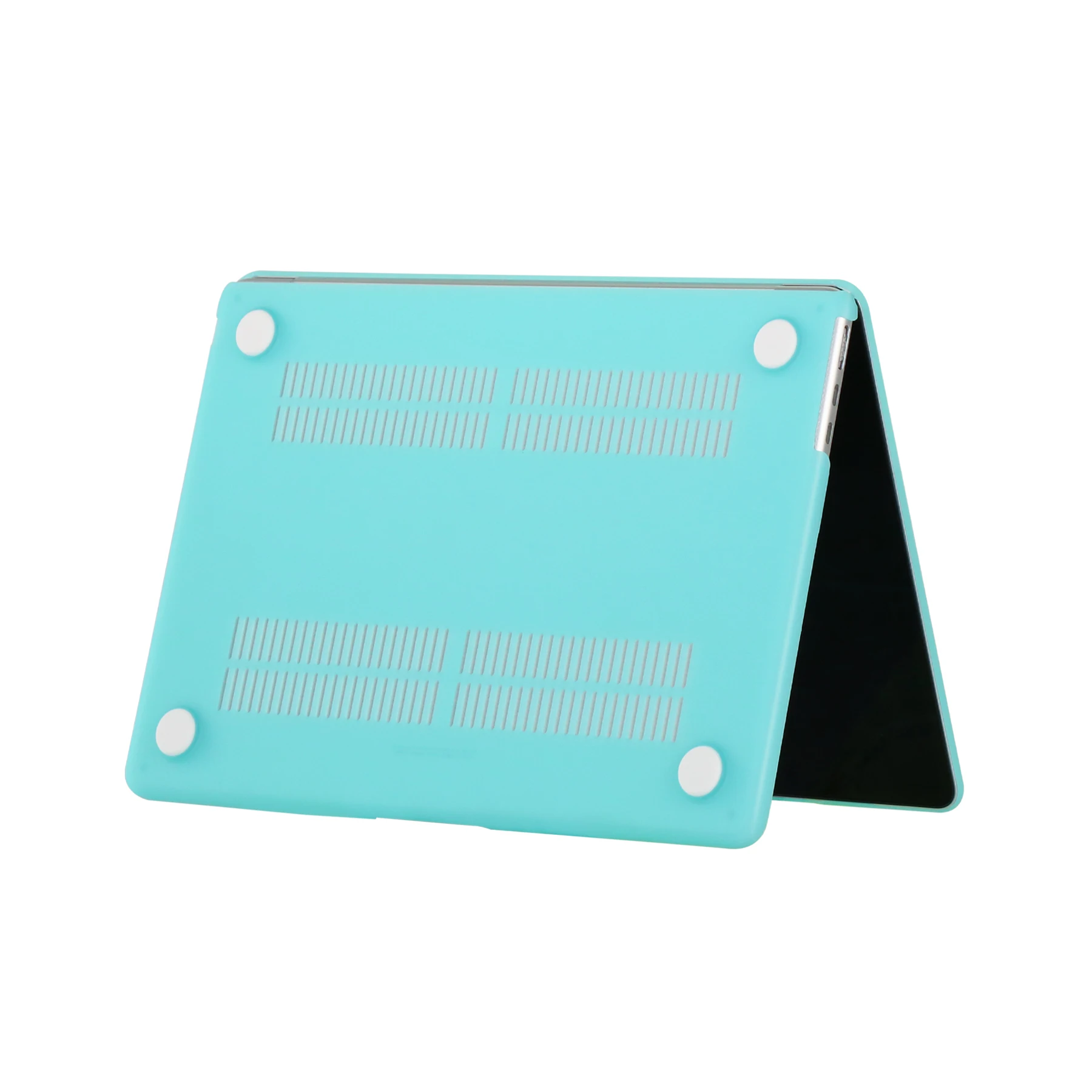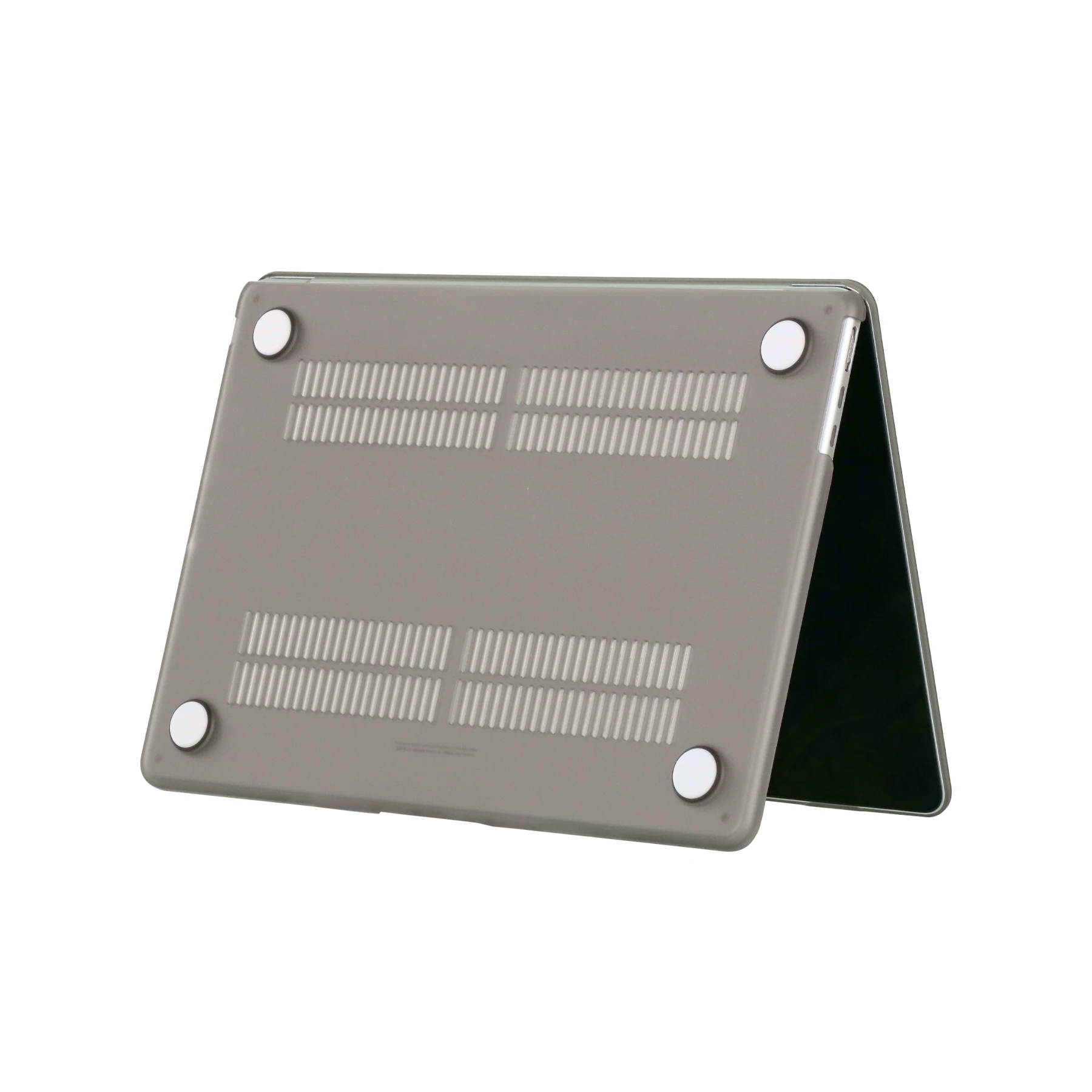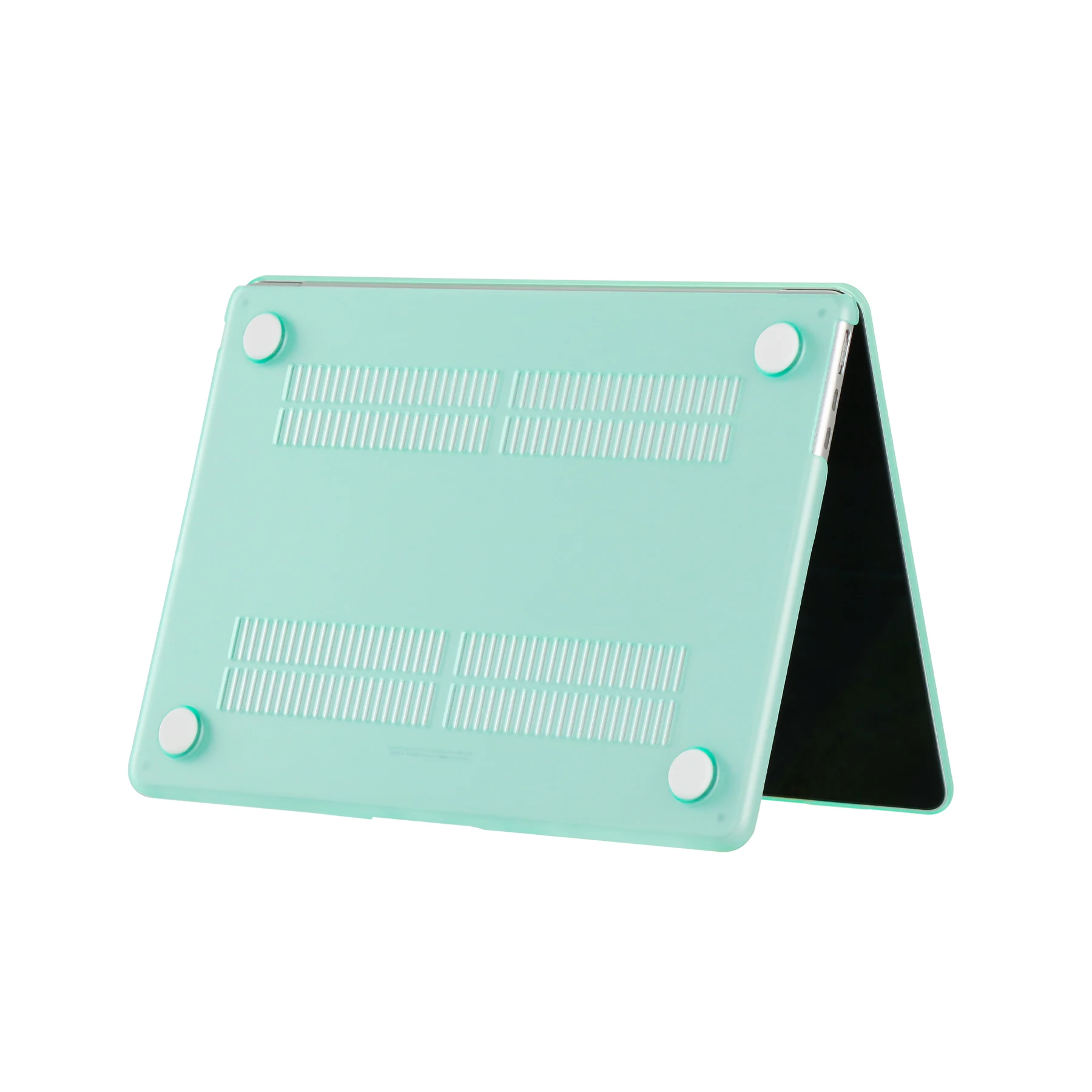Ventilación y disipación de calor: La parte inferior está ventilada para un desembolso seguro del calor. Los pies de goma antideslizantes en las esquinas de la parte inferior mantienen el espacio adecuado para la ventilación y mantienen su MacBook firmemente en su lugar.