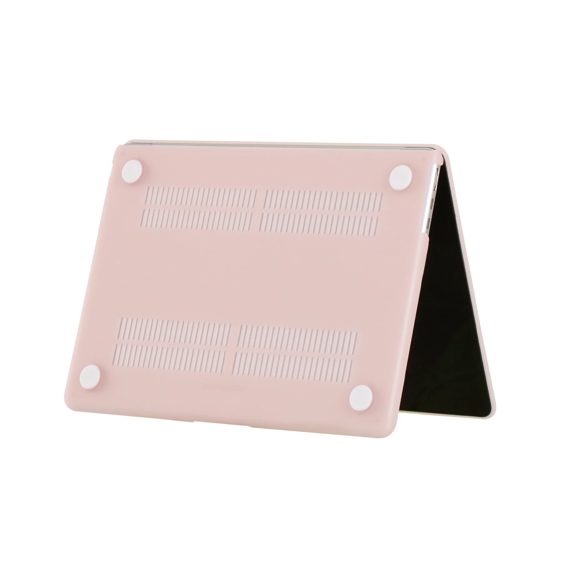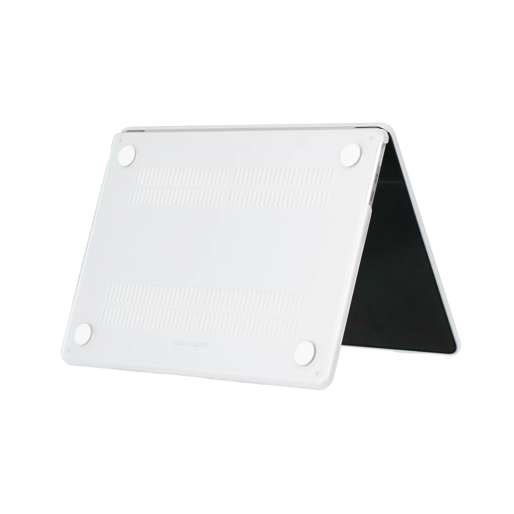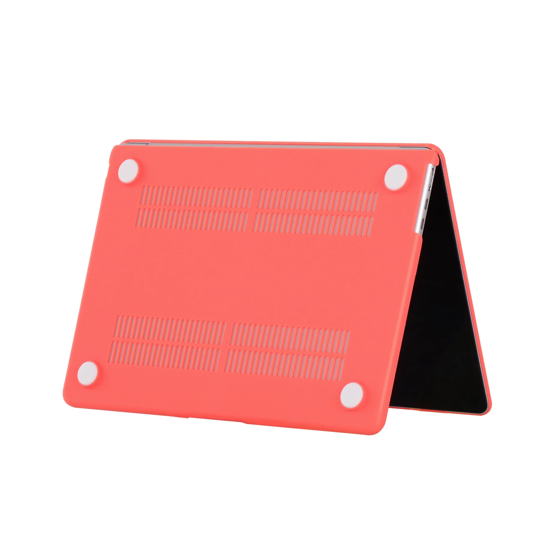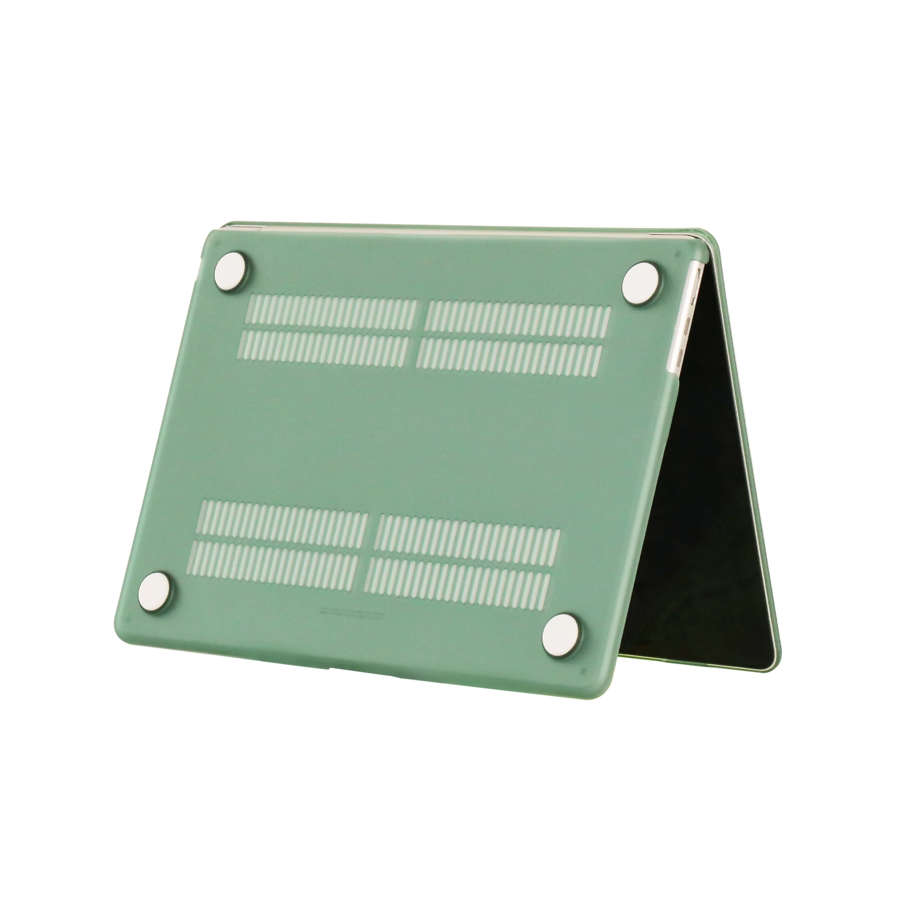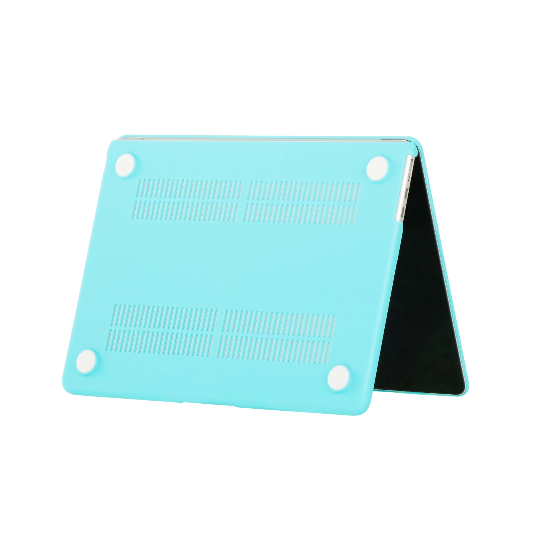 Ventilación y disipación de calor: La parte inferior está ventilada para un desembolso seguro del calor. Los pies de goma antideslizantes en las esquinas de la parte inferior mantienen el espacio adecuado para la ventilación y mantienen su MacBook firmemente en su lugar.