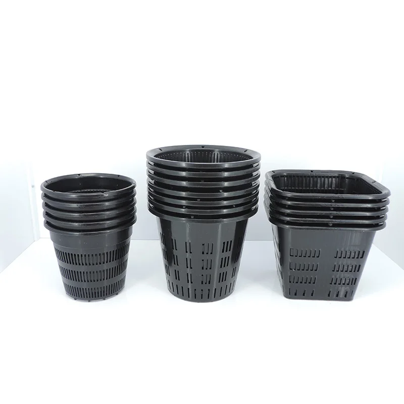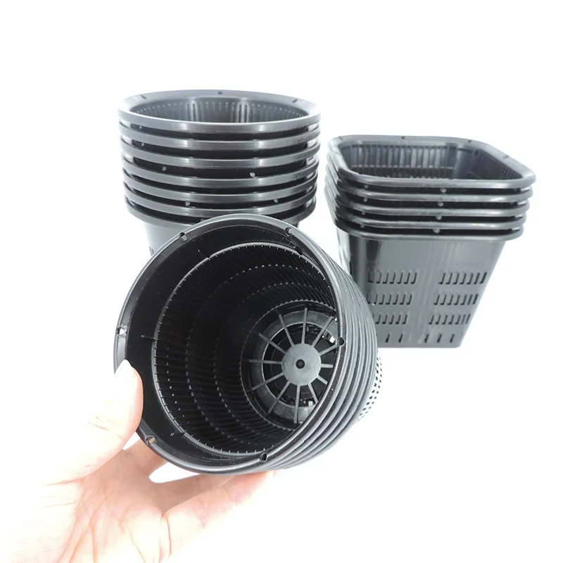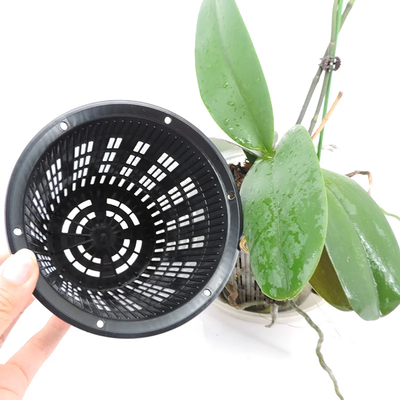 Olla de malla negra para orquídeas, recipiente de crecimiento transpirable con Control de raíz, flor de orquídea, agujero de drenaje, 10 Uds.