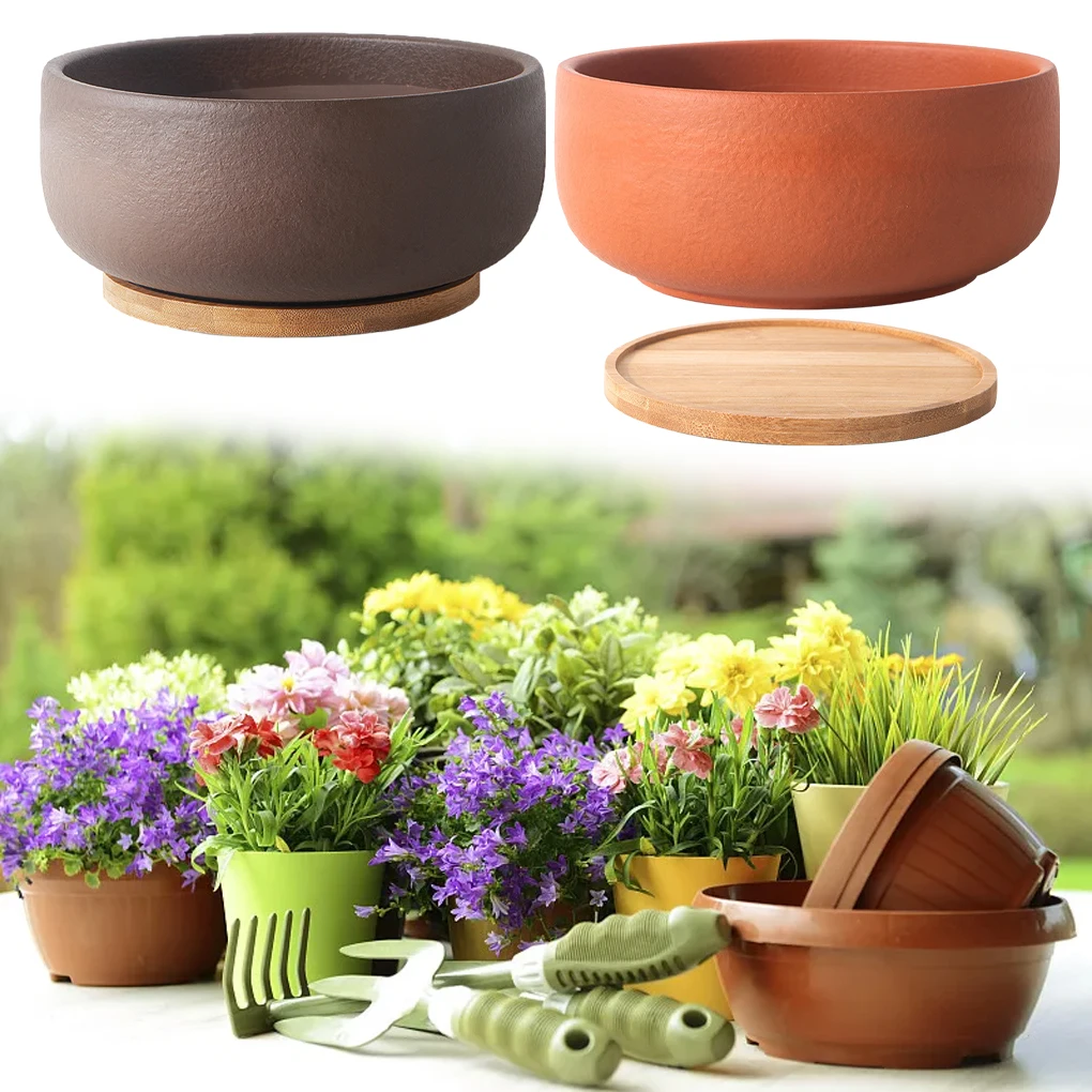 Comprar Maceta suculenta poco profunda de terracota, eficiente y buena sensación al tacto, adecuada para maceta con placa negra