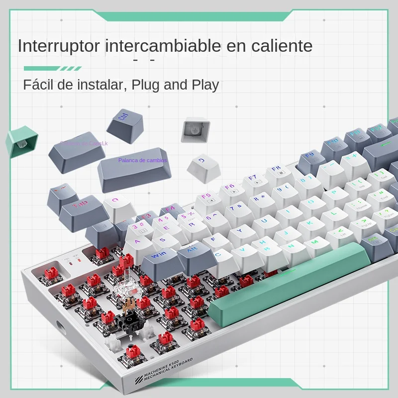 Comprar Machenike-Teclado mecánico K500 para juegos, teclado con cable intercambiable en caliente, 94 teclas, luz RGB, Mac, Windows