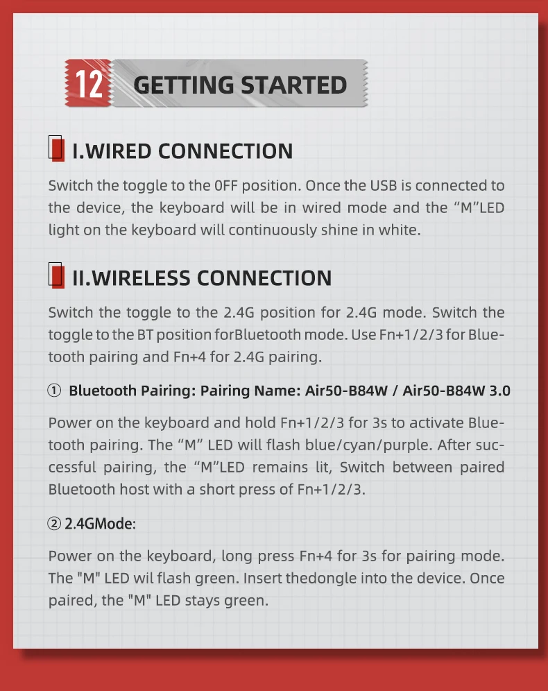 El Air50 de 84 teclas con un diseño TKL compacto al 75% ofrece el 95% de la funcionalidad de un teclado de tamaño completo.Con una longitud de teclado de aprox.32 cm, equivalente a la longitud de dos teléfonos inteligentes, libera más del 30% de espacio en su escritorio de oficina compacto.