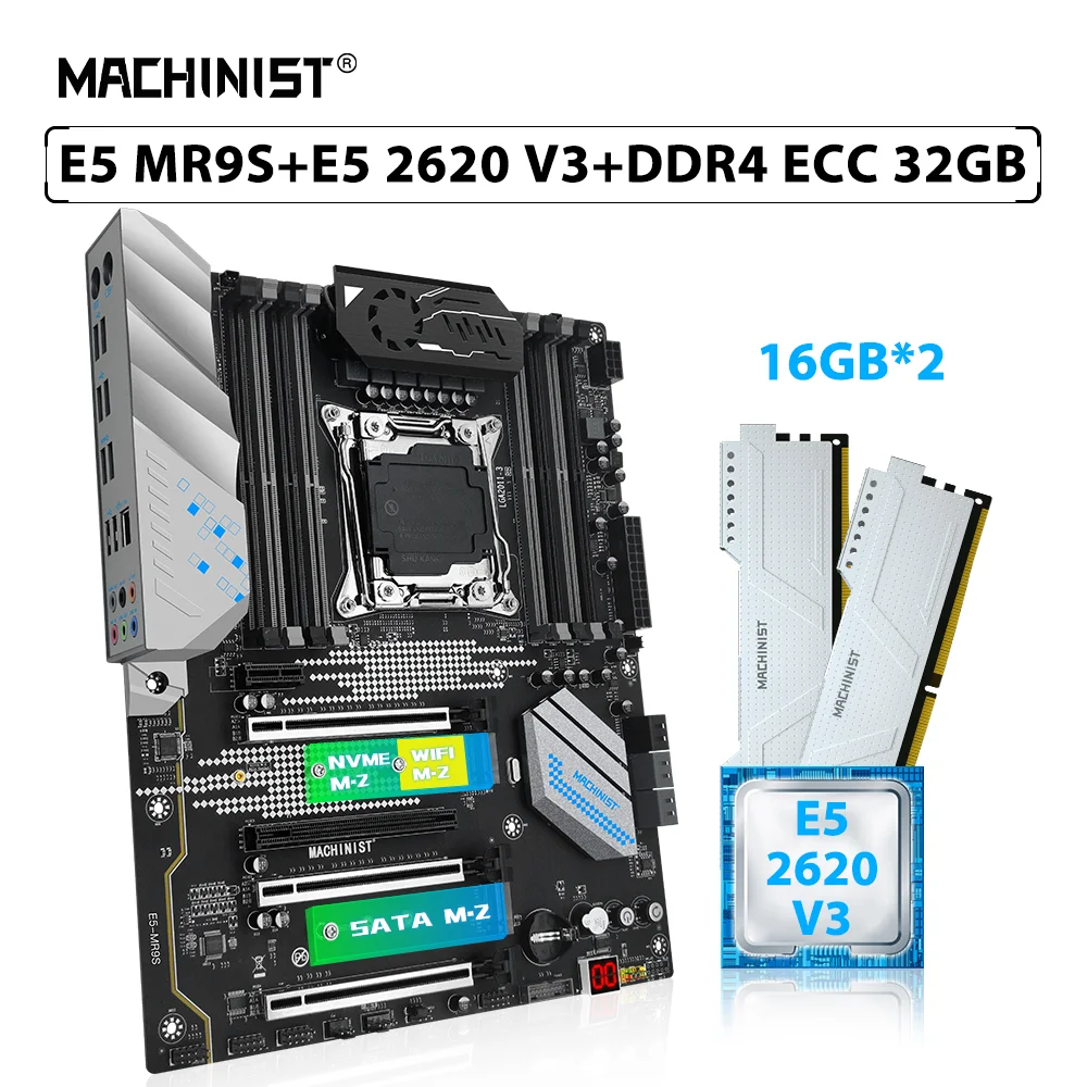 Comprar MACHINIS-Conjunto de placa base MR9S X99, Kit LGA 2011-3, procesador Xeon E5 2620 V3, CPU 2 piezas x 16GB = 32GB, ECC DDR4 memoria RAM, NVME M.2 SATA