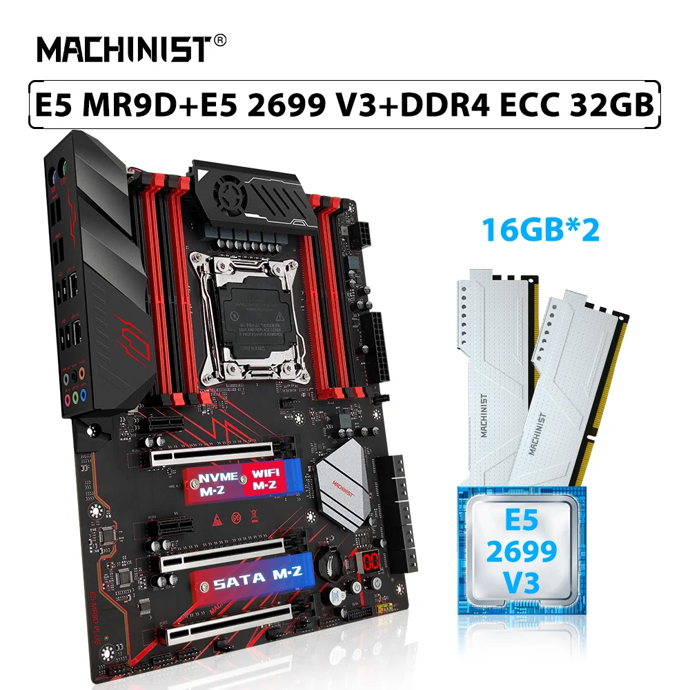 Comprar MACHINIS-Conjunto de placa base X99 MR9D, LGA 2011-3, procesador Xeon E5 2699 V3, CPU 2 piezas x 16GB = 32GB, ECC DDR4 memoria RAM, NVME M.2 SATA