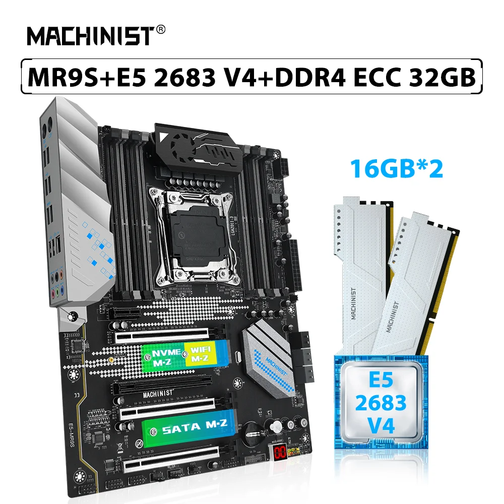 Comprar MACHINIS-Conjunto de placa base X99 MR9S, LGA 2011-3 Combo Xeon Kit E5 2683 V4 procesador CPU 2 piezas x 16GB = 32GB ECC DDR4 memoria RAM NVME M.2