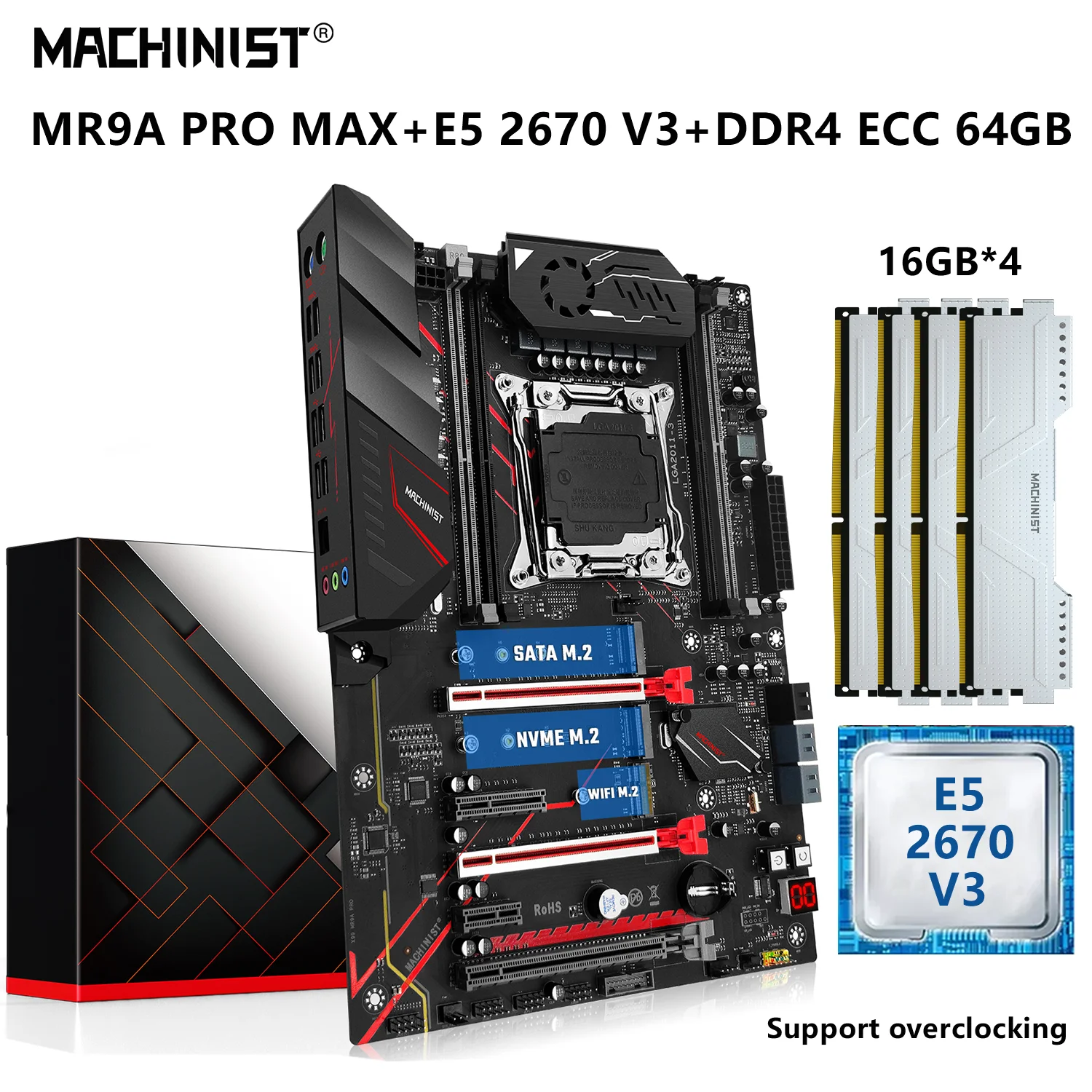 Comprar MACHINIST-Conjunto de placa base MR9A PRO MAX X99, CPU Xeon E5 2670 V3 LGA 2011-3, procesador 64G = 16Gx4 DDR4 ECC, Memoria SATA M.2 NVME